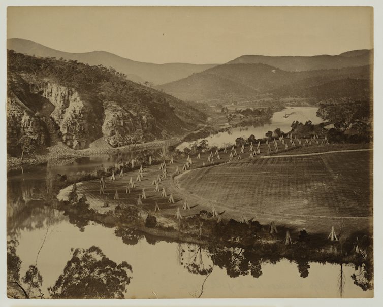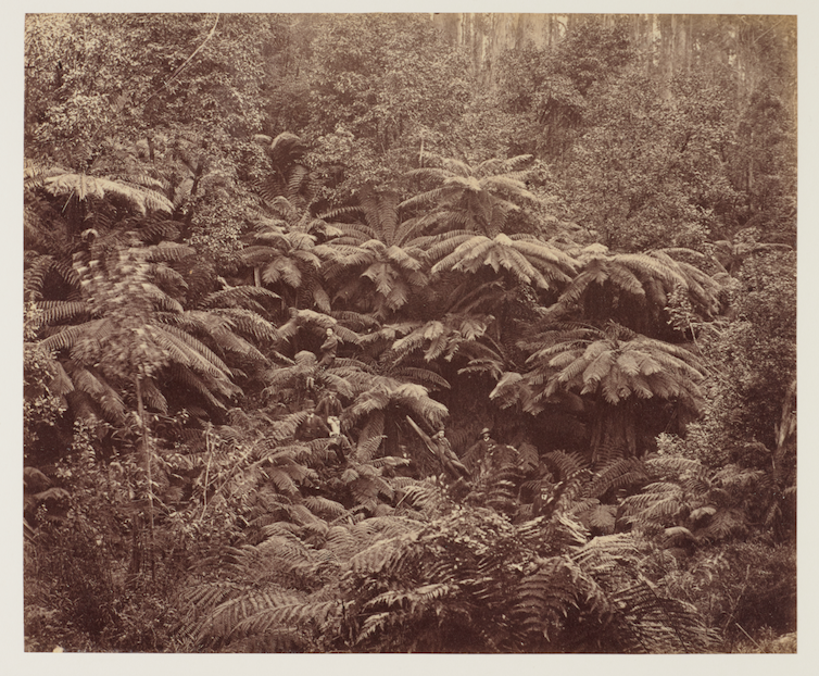 In settler colonies, landscape photography framed nature as beautiful, available and empty. In Victoria and Tasmania especially, landscape photography flourished. And although this mode of photography was not uniquely antipodean – it was pioneered, then perfected in the American West by photographers like Carleton Watkins and Eadweard Muybridge – it did have remarkable purchase in the Australian colonies.