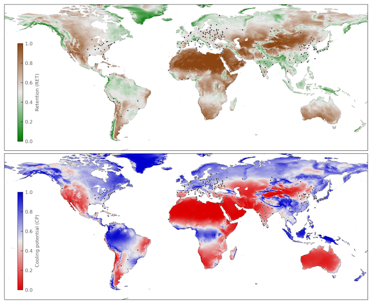 Our results, published in the journal Nature Communications, show the greatest cooling potential occurs where abundant rainwater is available for plants to transpire (release water vapour during photosynthesis). This is common for cities around the Equator and in much of northern Europe.