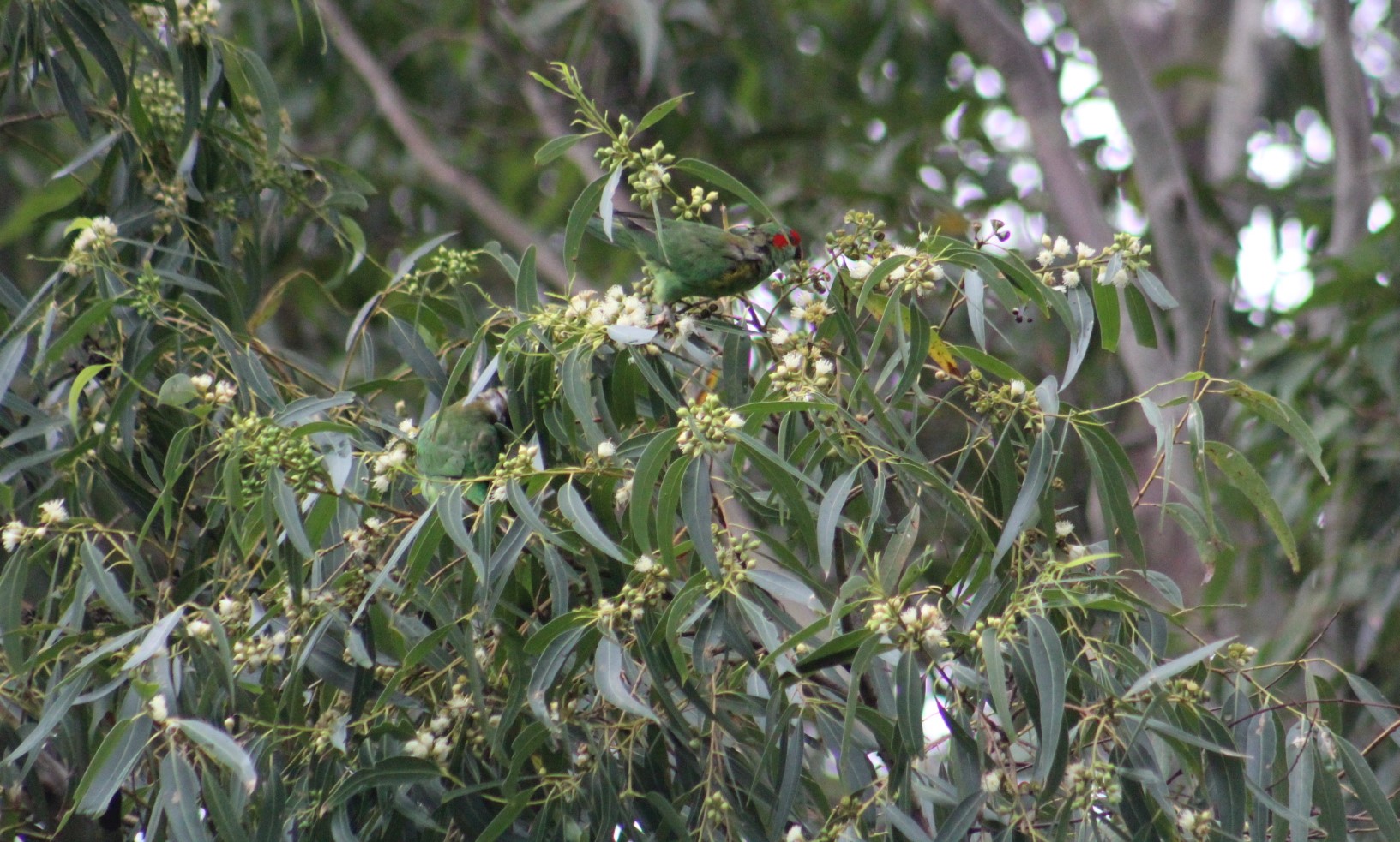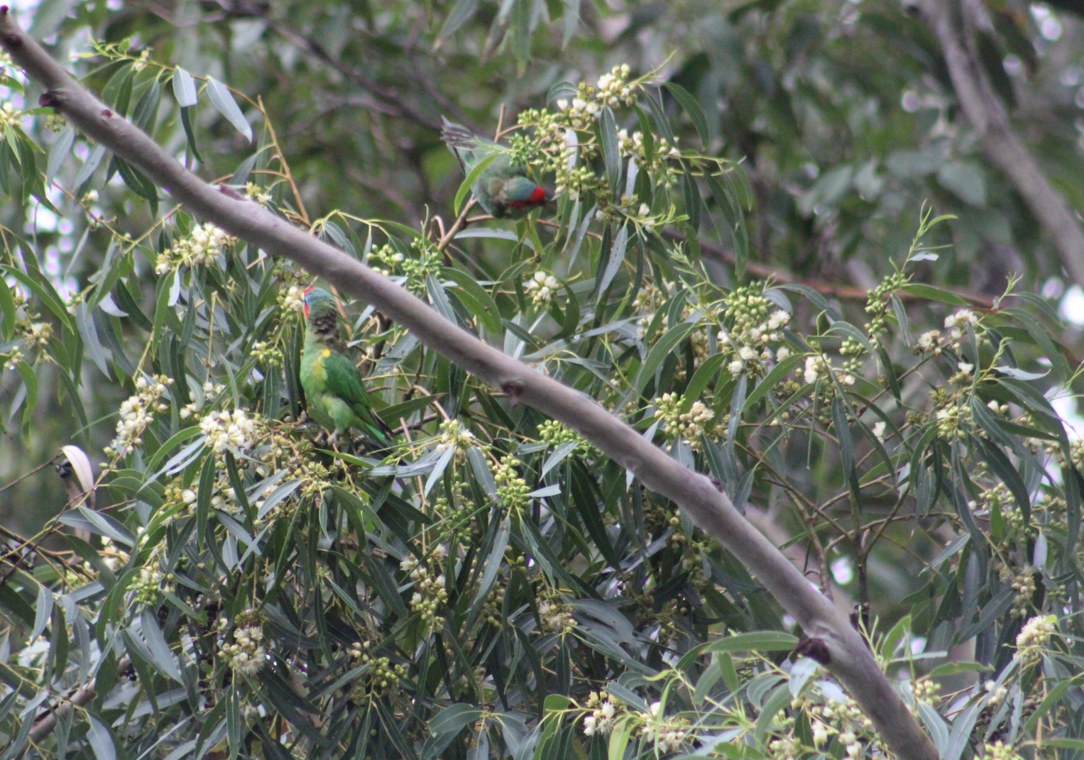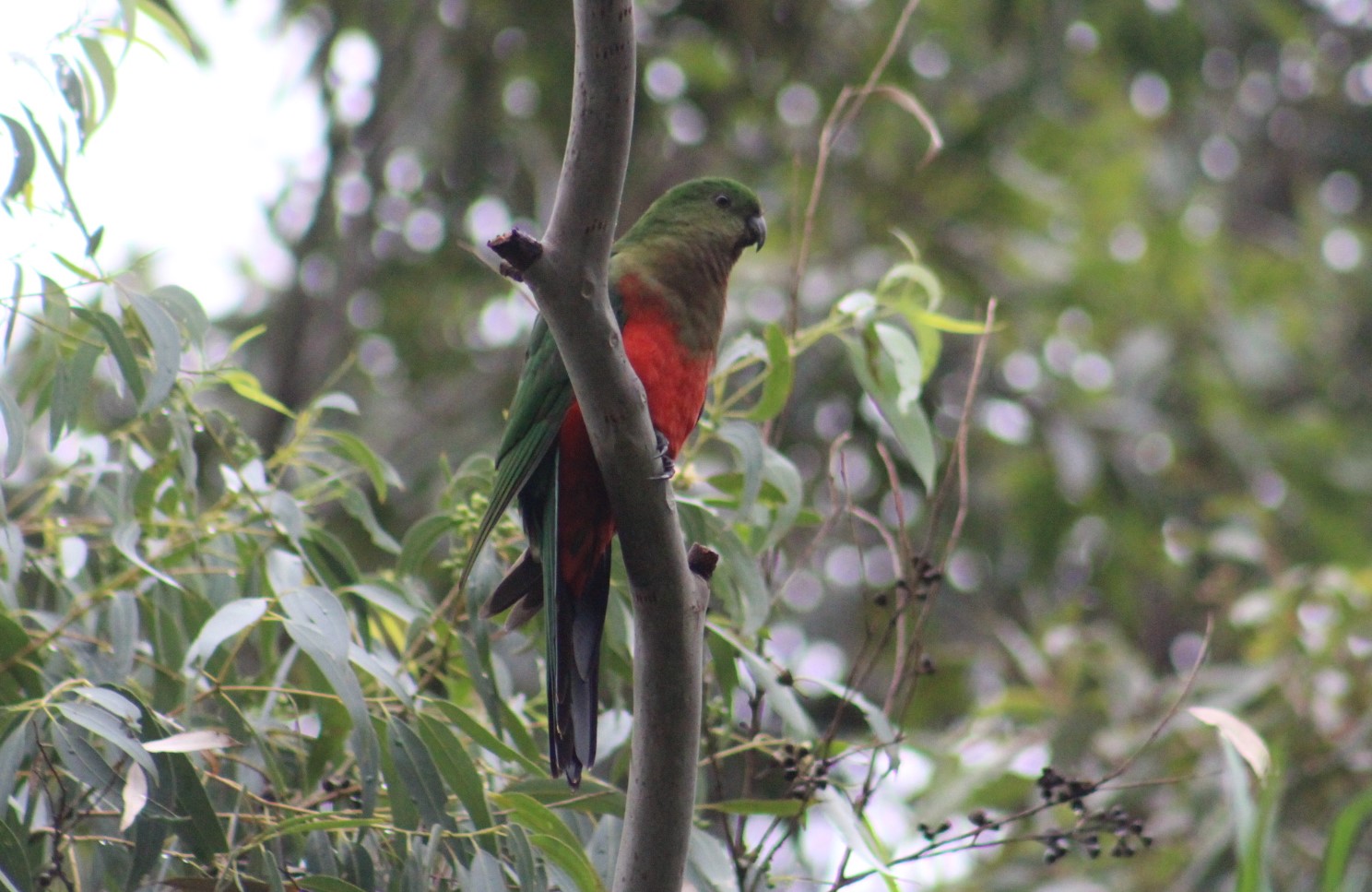 Musk Lorikeets - Female King Parrot: Pittwater Spotted Gums Feasting