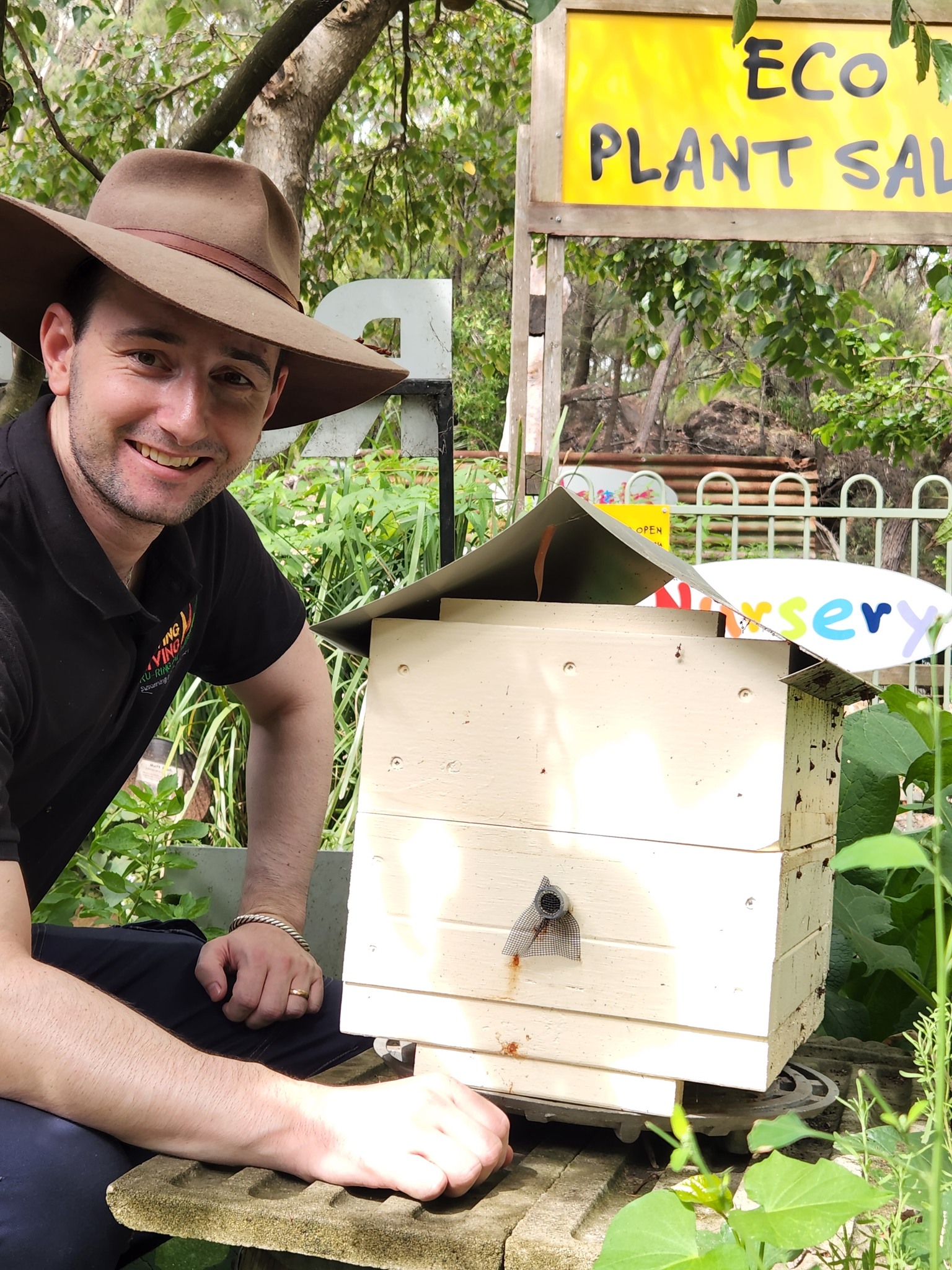 Sadly Kimbriki, like many others, lost our native bees during the extreme weather conditions experienced in 2022. We were delighted to receive a new native beehive yesterday, March 24, 203, for our Eco Garden, donated by Ku-ring-gai Council and kindly delivered and installed by their resident bee expert, Alex Austin. We look forward to having the "girls" in our garden and sharing the joys of our stingless native bees with our visitors again.