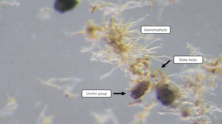 The green tuft is often from a group of fungi called Aspergillus. Under the microscope they look rather like the puffy top of a dandelion gone to seed.