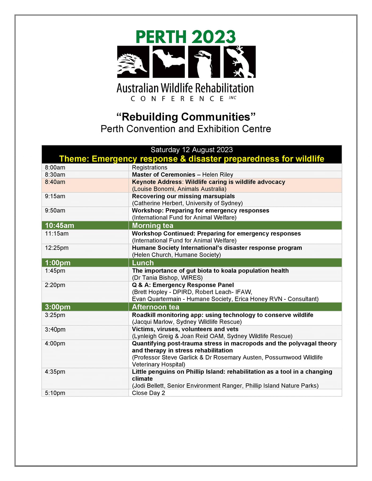 - Encourage and facilitate the organisation of regular national wildlife rehabilitation conferences around Australia