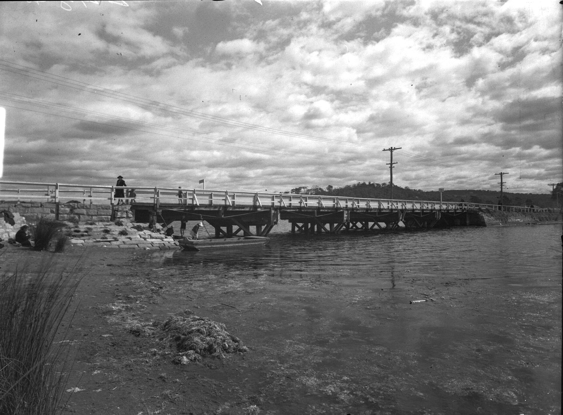 'Scotland Island, Newport, Pittwater, N.S.W.', photo by Henry King, Sydney, Australia, c. 1880-1886. and section from to show cottage on neck of peninsula at western end with no chimneys through roof. From Tyrell Collection, courtesy Powerhouse Museum