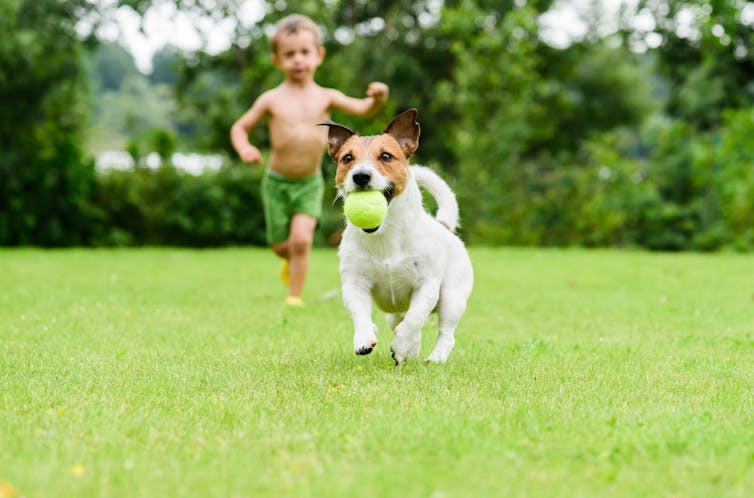But that doesn’t mean children should be discouraged from playing with the family dog. Play is something children are usually better at than adults. Parents I interviewed for my research into children’s interactions with a family dog said their kids don’t tire of throwing a ball or playing tug. And for dogs, play is a natural behaviour that they don’t grow out of.