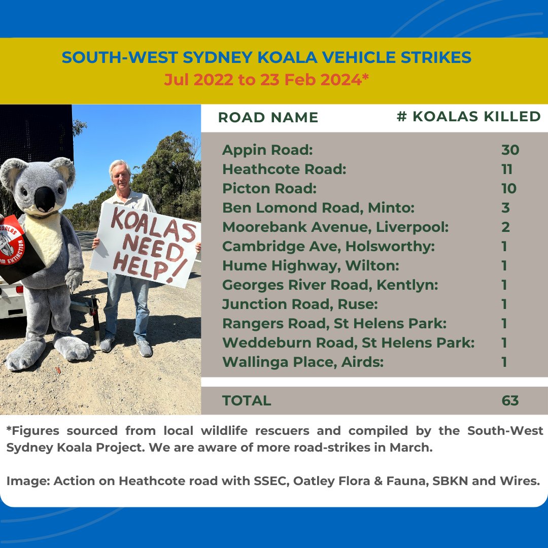 The NSW Wildlife Rehabilitation dashboard (Wildlife rehabilitation data current to 30 June 2022) records 5,379 animals rescued in this LGA over the 2021/22 recorded period and 1,423 rehabilitated enough to survive and be released. Those numbers point out 3,956 did not make it.
