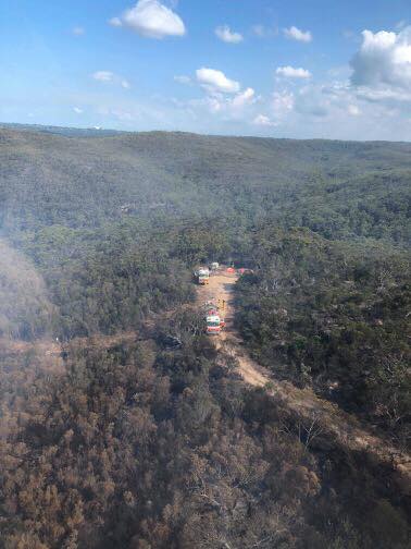 April 25th: Coal & Candle 1B with Terrey 1 (foreground) on the Caleyi track checking on fire activity after Sunday’s hazard reduction. Photo taken from Firebird 291 during one of its runs.