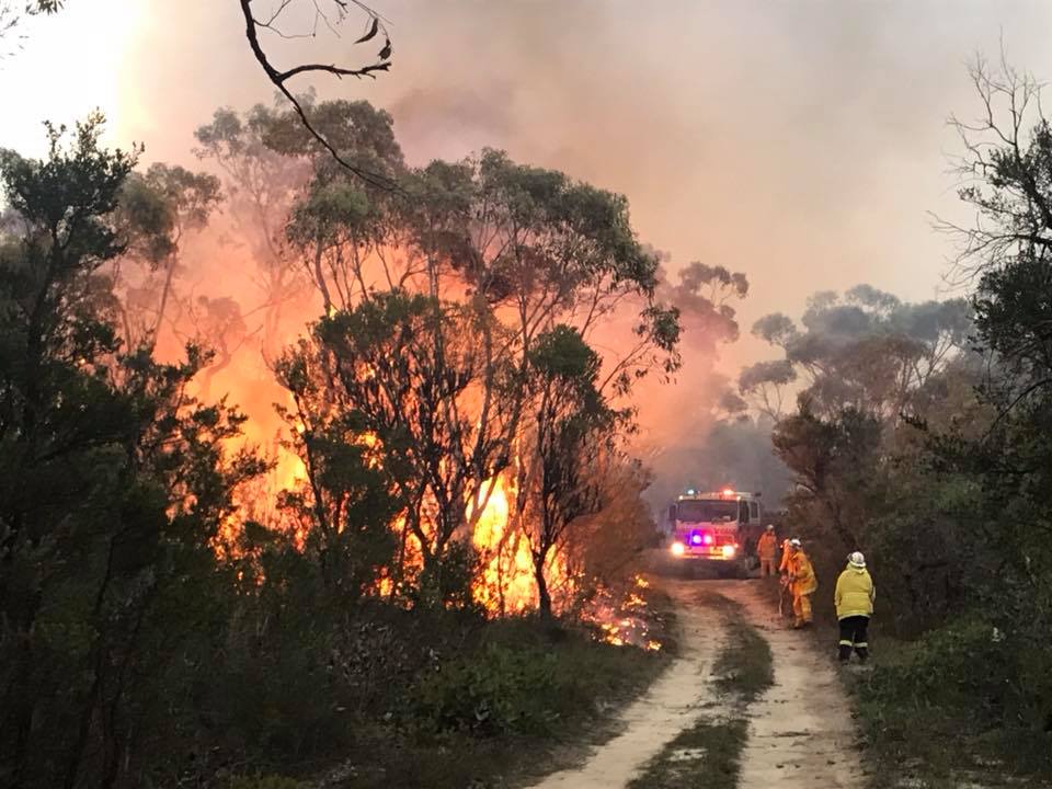“The fire jumped over the road into the bush behind us, we tried to stop it, but it took off East towards Menai. With the flames so intense, our trucks had to drive out of the area to safety.”