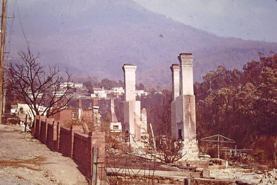 This row of chimneys is all that remained of these houses in South Hobart. Photo courtesy Harley Stanton