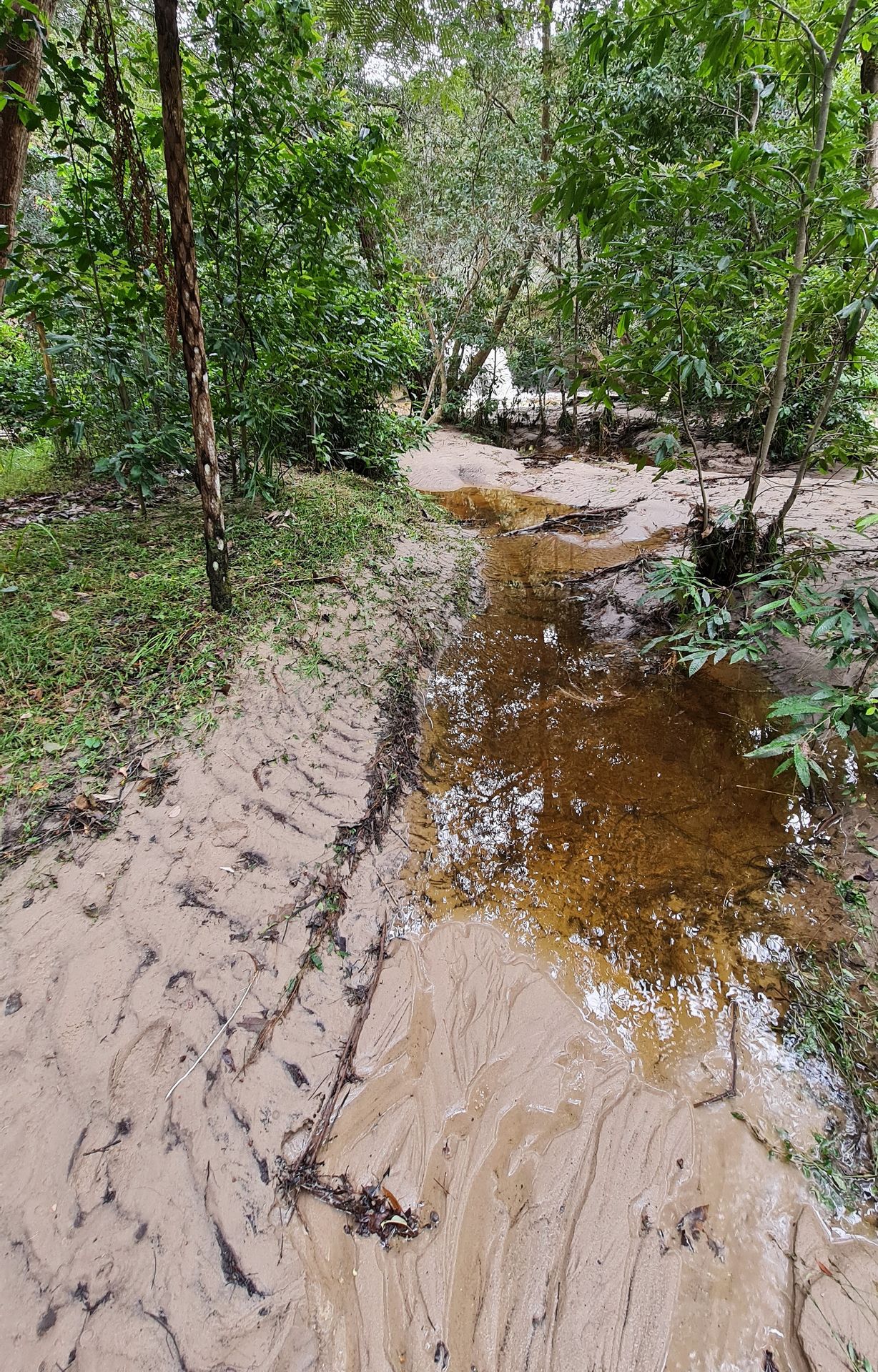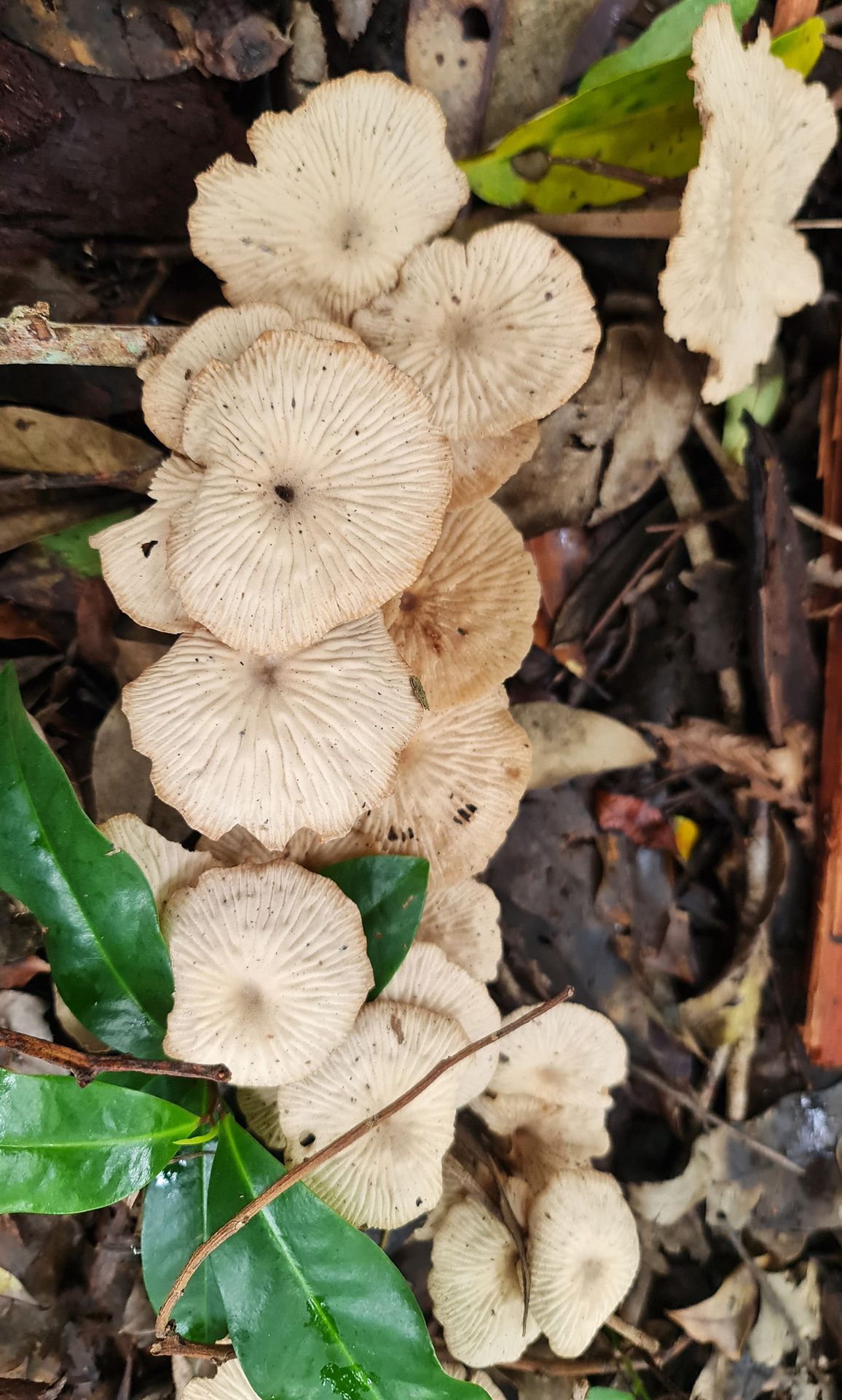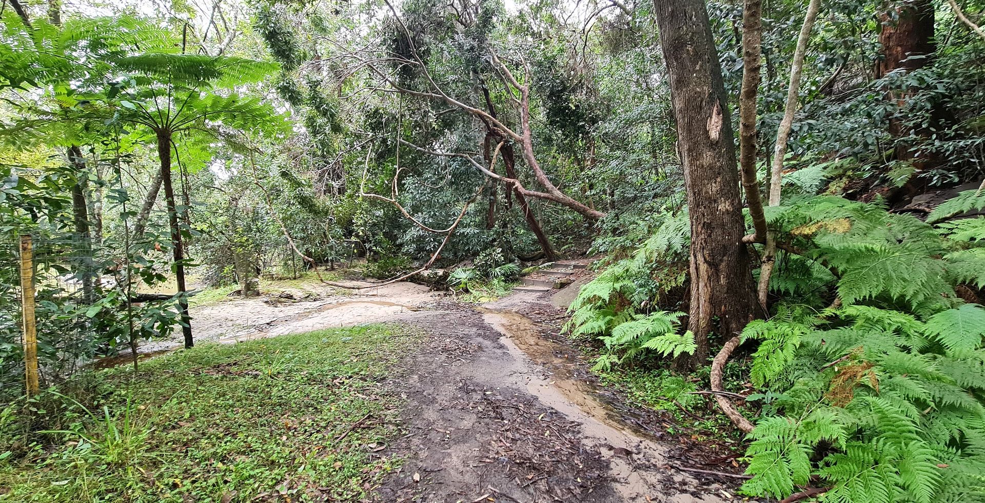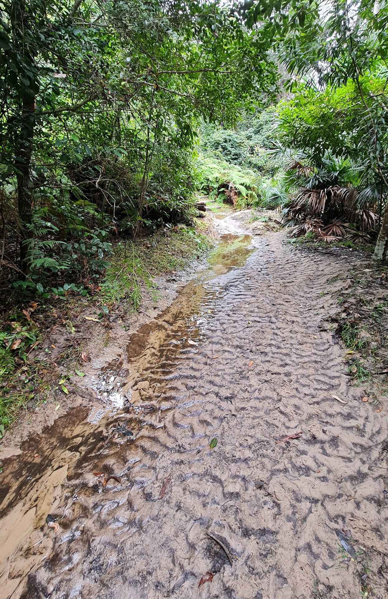 Last Monday I decided to check out the Irrawong falls after some very heavy rains on the weekend. With on and off rain over the past month, I found the usual fungi growth in the usual spots, flooded tracks, washed away footbridge, tree roosting Brush Turkeys and millions of mosquitos. The undergrowth was green and lush.