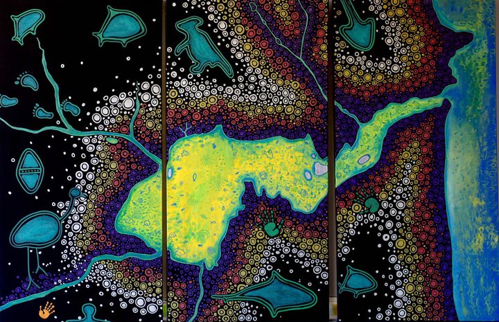 Through her art, Birk asserts herself as a contemporary storyteller of the Yaegl people and her art-making practice allows her to explore to what extent she can imprint her identity and personal experiences, as well as the notions of belonging and familial lineage, through the imagery, the colours, the patterns and the forms in her work.
