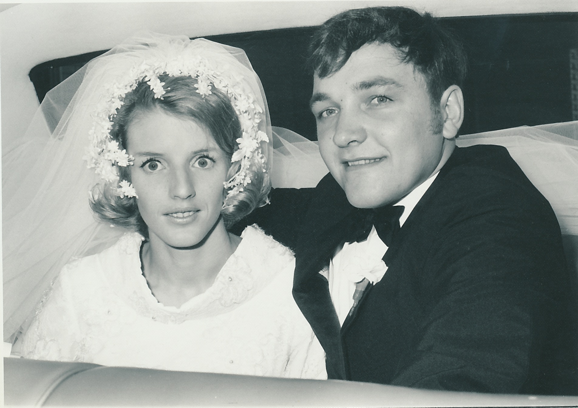 Catching the train home from the city. I can still remember this gorgeous dress she was wearing, and this was the days of shorter skirt fashions, and lovely bright coloured tights. The train took off and she fell down - this beautiful girl - so I helped her get up and that was it. We married in 1970.