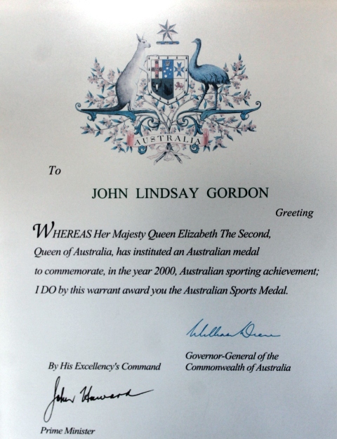 In the year 2000, when they had the Olympics here, old Howard commissioned the Governor General to petition Queen Elizabeth for an Australian Olympic medal for ‘services to yachting’ and I received that. There were only two thousand issued and sailing only got fifty. They had to do something for all those people in the background. I was nominated. The Governor General wears one too; she was a fast bowler, in cricket. I can put ASM after my name should I want to or if I’m doing anything in yachting. My little yacht I have now floats down there on Pittwater, it’s still fully set up for snoozing and cruising.