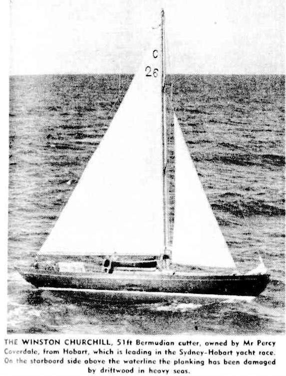 The Winston Churchill, which had led all the way, is thought to be be-calmed off the east coast of Tasmania OCEAN YACHT RACE SYDNEY TO HOBART. (1946, January 3). Cairns Post (Qld. : 1909 - 1954), p. 2. Retrieved from http://nla.gov.au/nla.news-article42477854