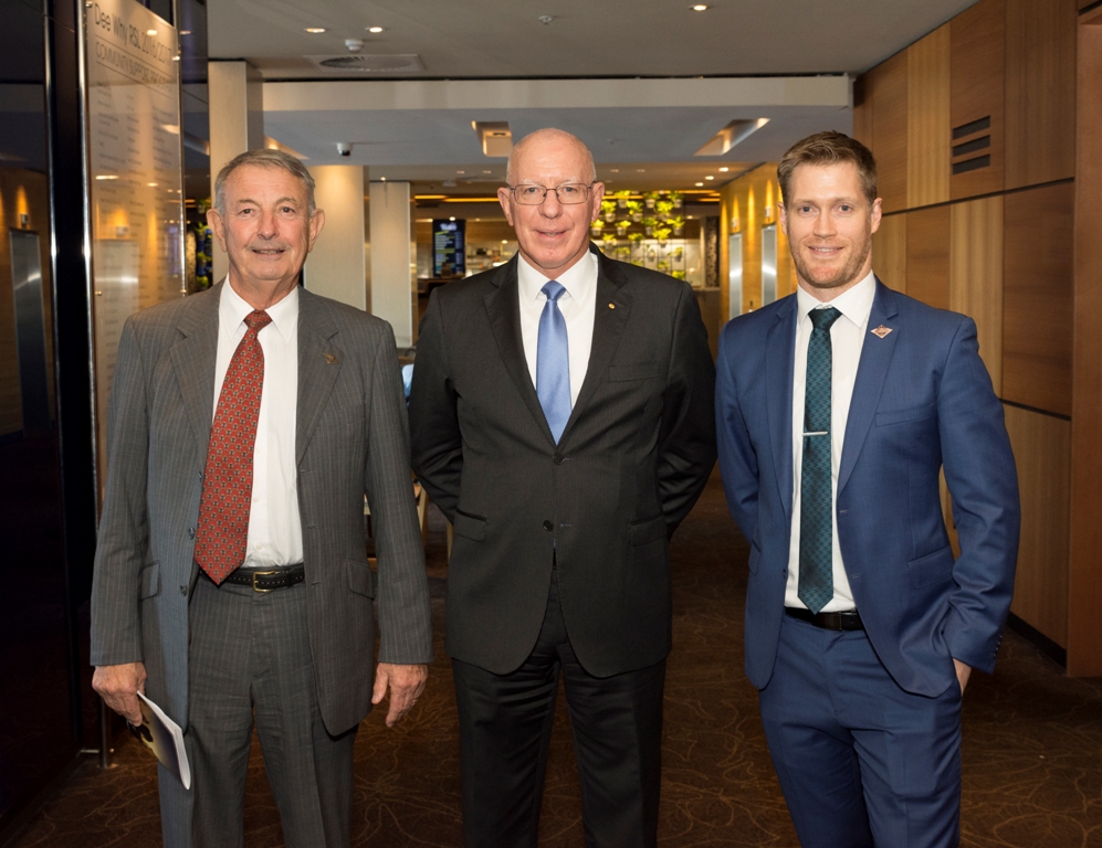 John McInerney OAM, the Governor of New South Wales, His Excellency General The Honourable David Hurley AC DSC (Ret'd) and Ben Webb. Manger of the Veterans Centre – Sydney Northern Beaches. Photo courtesy Dee Why RSL Club: www.deewhyrsl.com.au