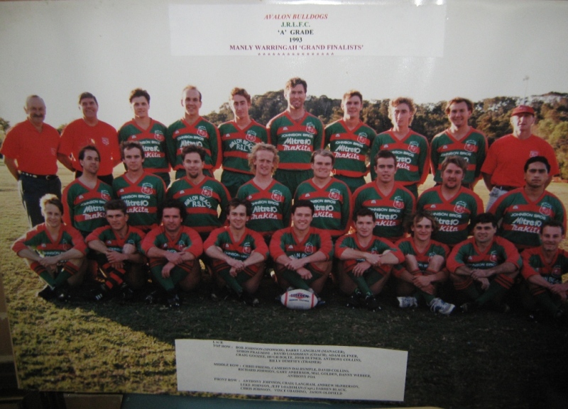 A Grade Avalon Bulldogs team 1993 - Sponsored by Bob Johnson and with 7 Johnson Family Members as players. Photo courtesy Brian Friend.