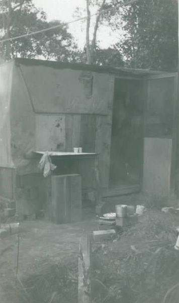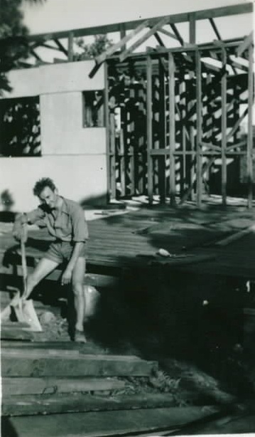 Above: Living at Nareen Parade: Bob and John lived in this packing Crate on site while they built the house. Right: Building the house in Nareen Parade.