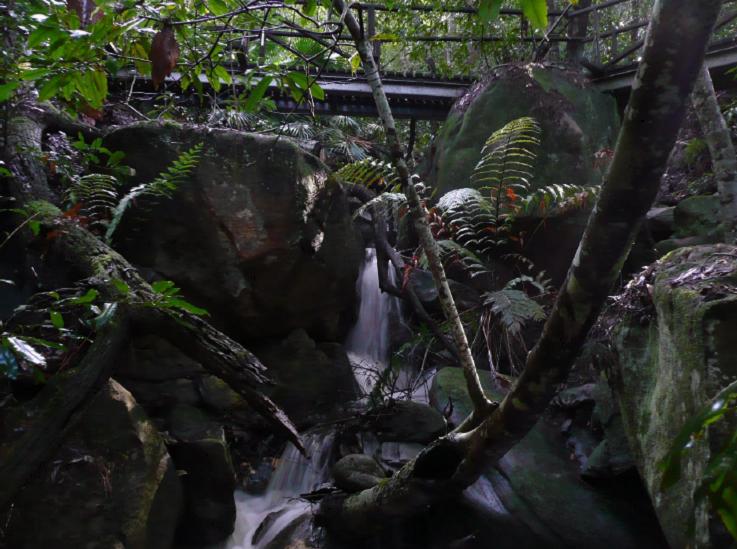 This gully is one of the most beautiful and peaceful sections of the Sanctuary where the creek winds its way down the gully, fringed by rainforest trees, cabbage tree palms and ferns. It is an area where echidnas have been seen and where the lyrebirds can be