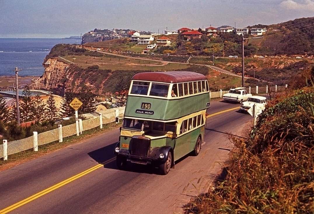 Leyland OPD2/1 2027 winds through Bilgola Bends in 1969. Photo credit: John Ward - City of Sydney Archives. Visit The Bus To Palm Beach: Some History