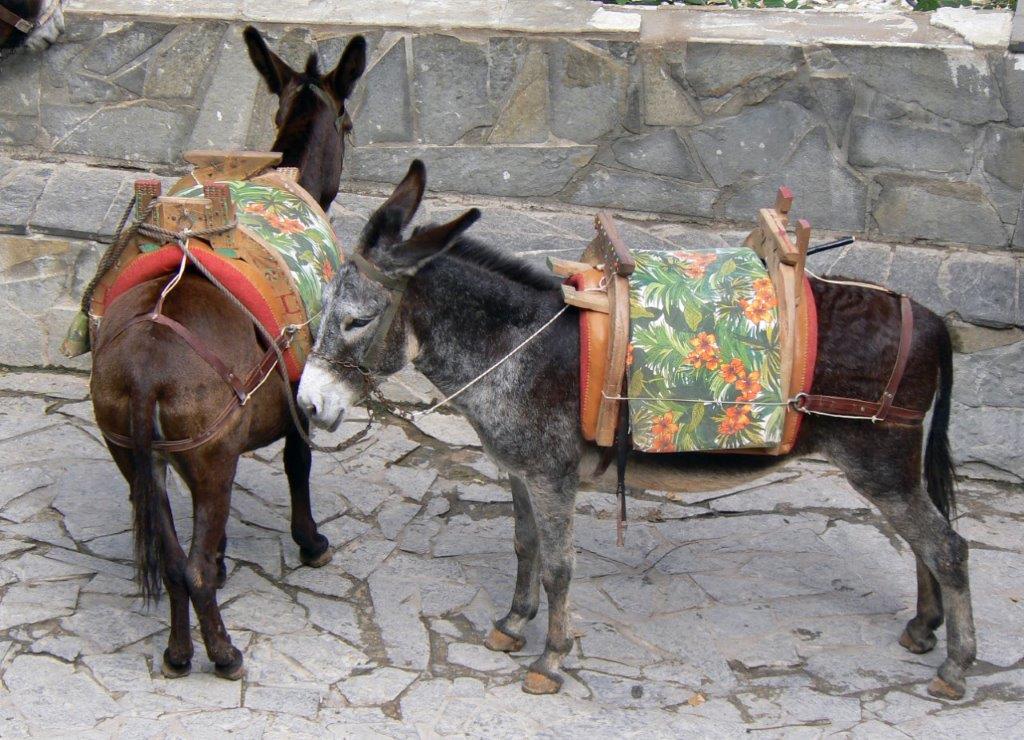 Donkeys available to take tourists up to the acropolis.