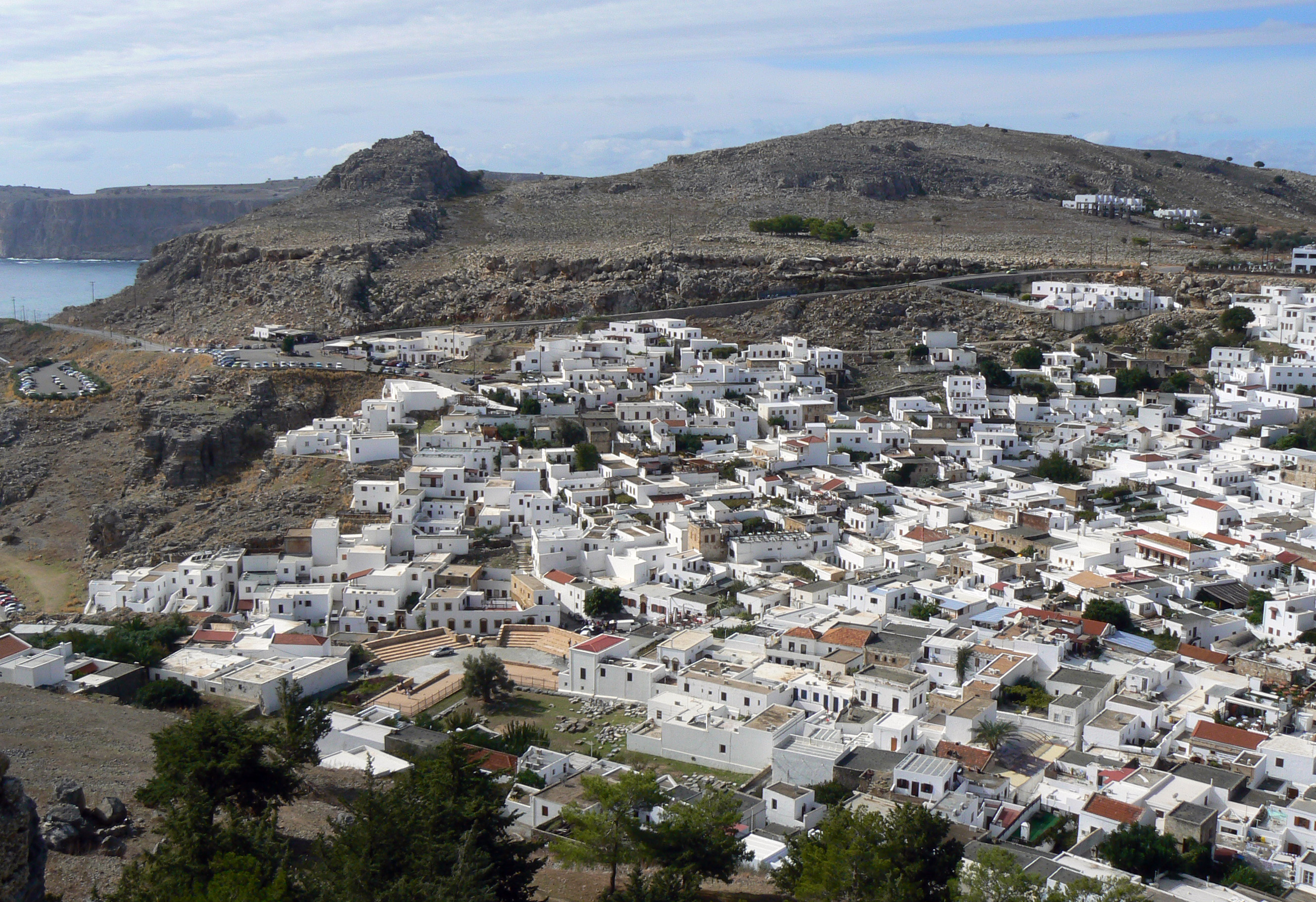 There is a good view of the harbor of Ayios Pavlos (St Pauls Bay) from the top of the acropolis complex. The Apostle Paul is said to have sought shelter here from a storm during his voyage from Ephesus to Syria in 51 CE.