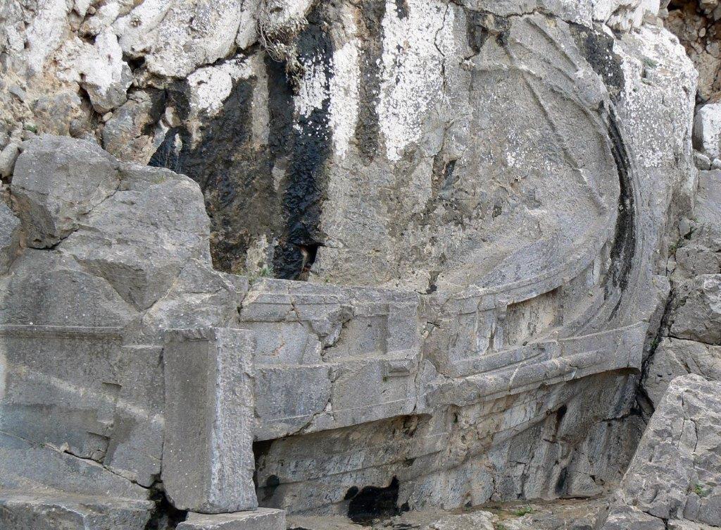 Nearby, on a sheer rock face, is a carving of a ship, commemorating a victory by Admiral Hegesandros of Miklon in the 2nd Century BCE.