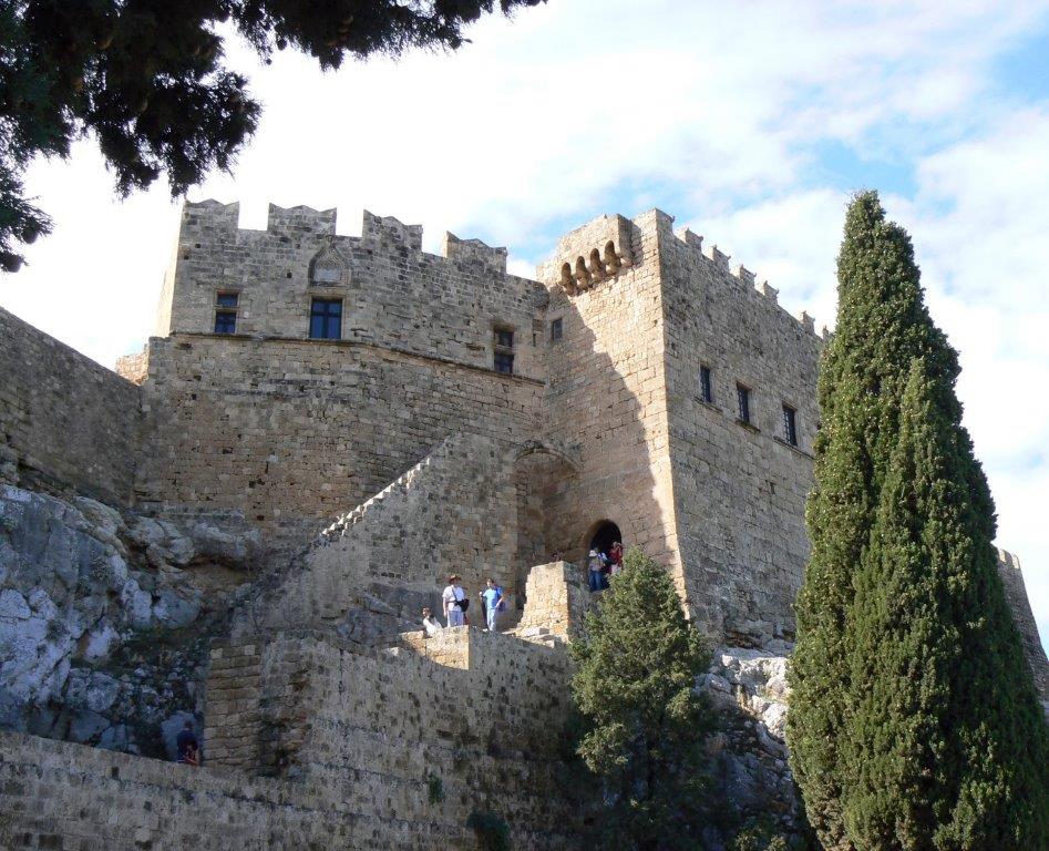 Lindos has good bathing beaches with beautiful Pallas Bay below the town. On the walk up the hill to the acropolis there are fine views of the harbor and surrounding waterways. From the entrance to the acropolis a stepped path leads to a small square with a Byzantine tower on the south side.