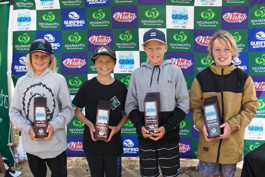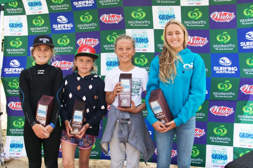 Event three on Woolworths Surfer Groms Comps presented by Wahu series wrapped up today following a day of exciting heats in one-to-two foot waves at Jones’ Beach.