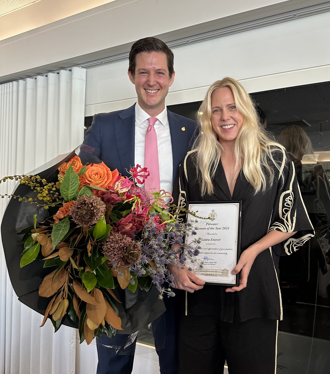 Photo: Rory Amon MP with Pittwater Woman of the Year, Laura Enever