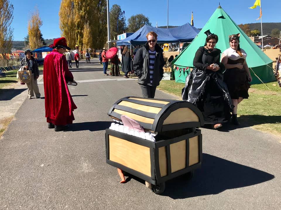 Bea Pierce: Because the theme this year is Once Upon a Time, we’re with NSW Furs (Steam Punk) and we’re all big Studio Ghibli fans. We’re also big Terrey Pratchett and Discworld fans, hence Rincewind and the Luggage.
