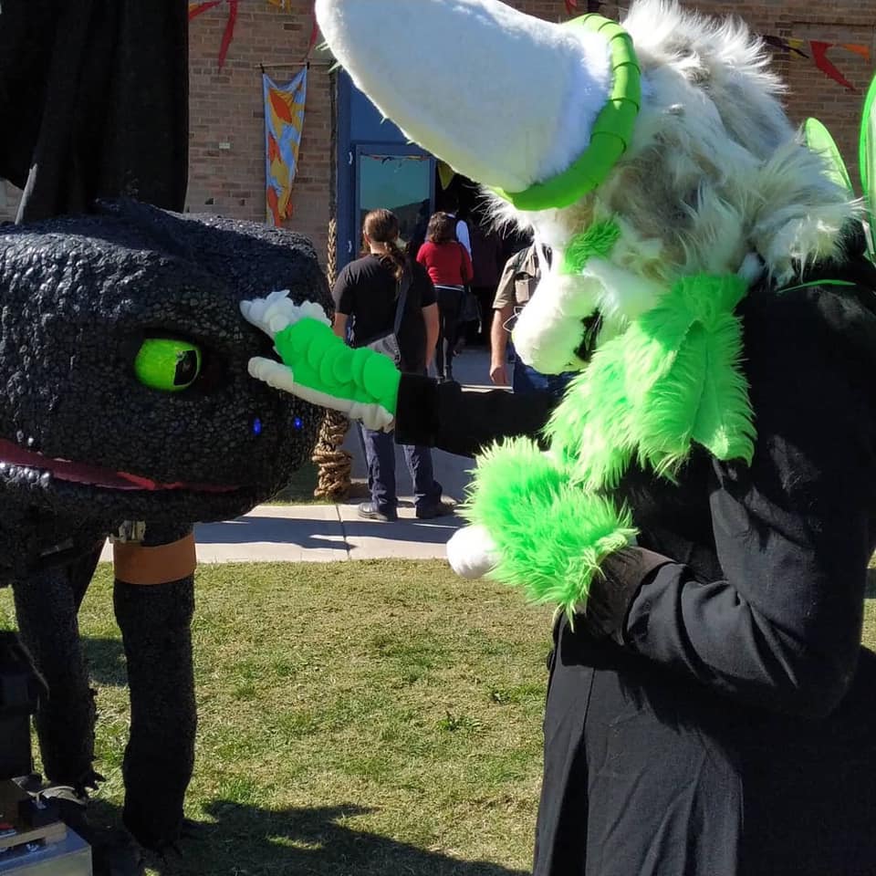You know, no artist truly works alone, especially not when making something of this scale. Big thanks to my family - it’s been a group effort! Maia has contributed much of her furry costume making knowledge and made his nose. Kai has helped lug stuff and help me take the skin on and off multiple times (believe me - it’s heavy and like wrestling a dead bear) and of course my partner in crime as always is Adam, who had the engineering challenge of constructing the frame and making it all work!