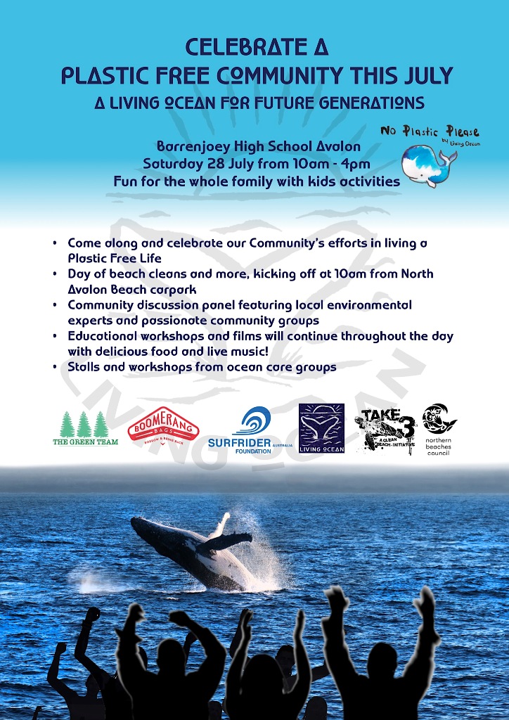 As part of the Plastic Free July initiative, Living Ocean invites everyone to come along to Barrenjoey High School, off Tasman Road in Avalon from 10am – 4pm on Saturday 28 July for a day of love for our planet and learning about living a plastic free life.