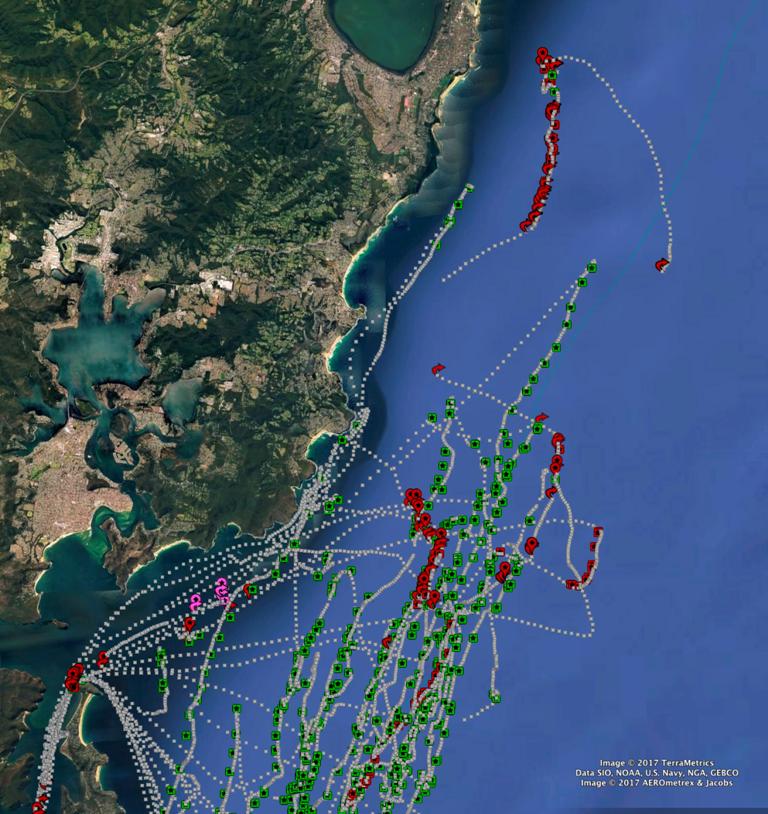 Over the last few years Living Ocean’s data has starkly revealed that areas off Sydney proposed for commercial sand mining are high-use areas for whales and could be stated to be ‘whale highways’ where the mammals are using familiar sea channels and the floor of the sea, as landmarks, to find the way they swim, and have swum, north or south.
