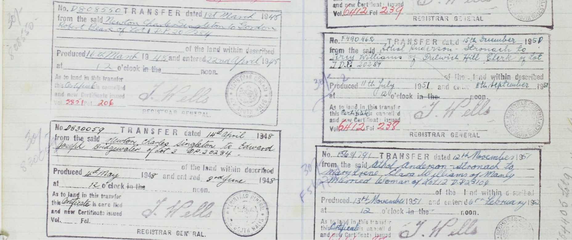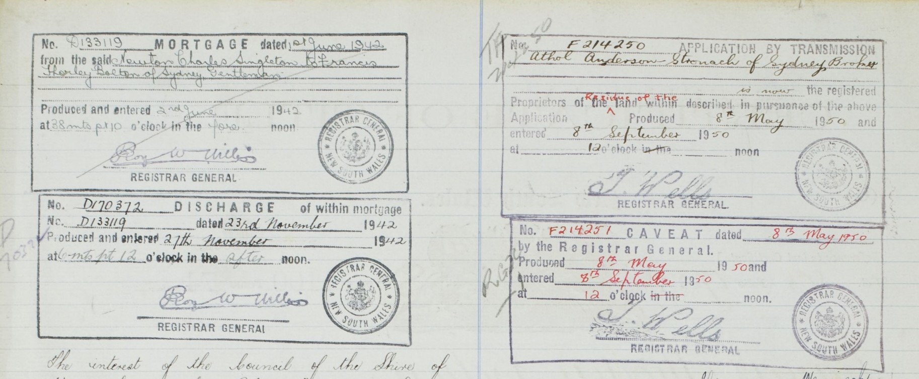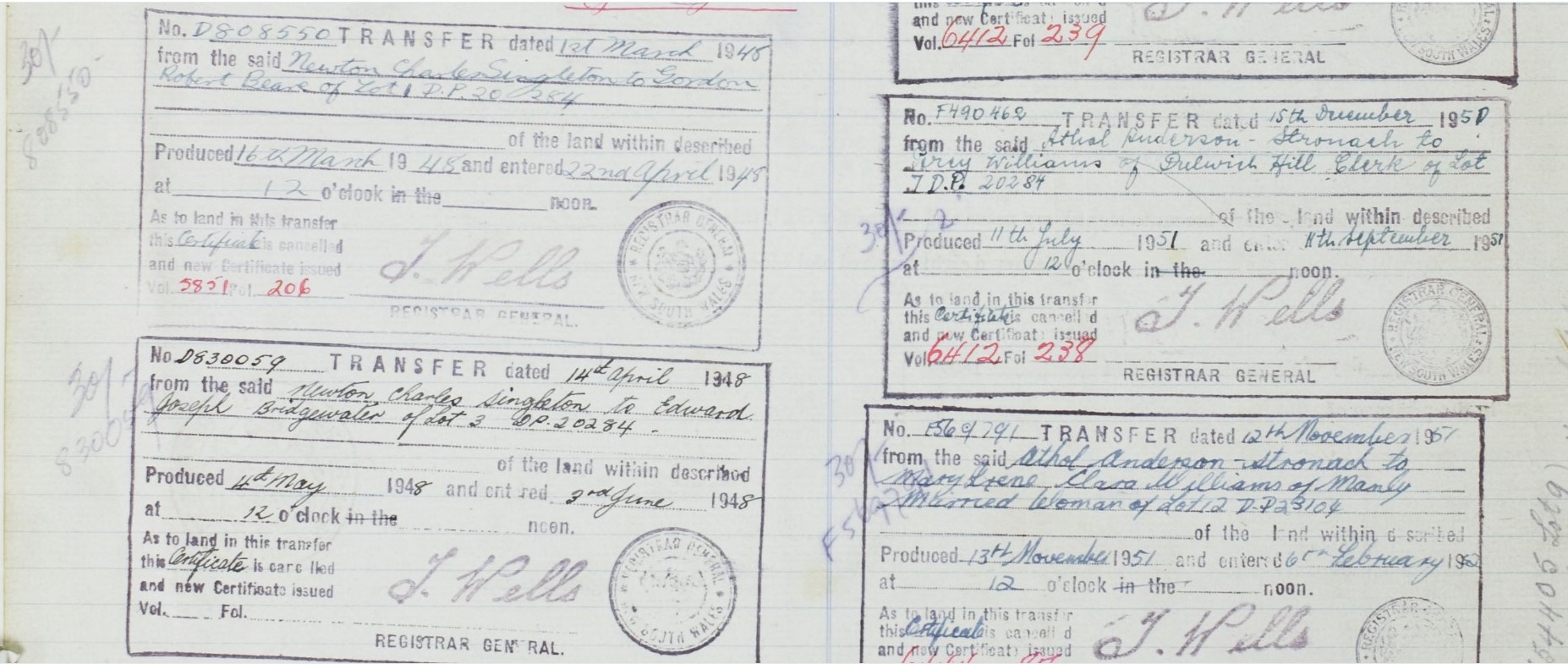 Frederick Chave sells to 18 acres 1 rood 33 perches to Francis Bolton on June 19 1893 – Vol-Fol 1100-74. Mr. Bolton sells to Newton Charles Singleton of Lovett Bay on June 1st 1942, who sells off some lots, and then sells to Athol Anderson Stronach (Portion 17), Broker, May 8th 1950, who sells off some lots and then the residue becomes Vol-Fol: 6537-191, Certificate registered July 24th 1952, as 18 acres 1 rood and 33 perches still, and he sells lots into 1950’s.