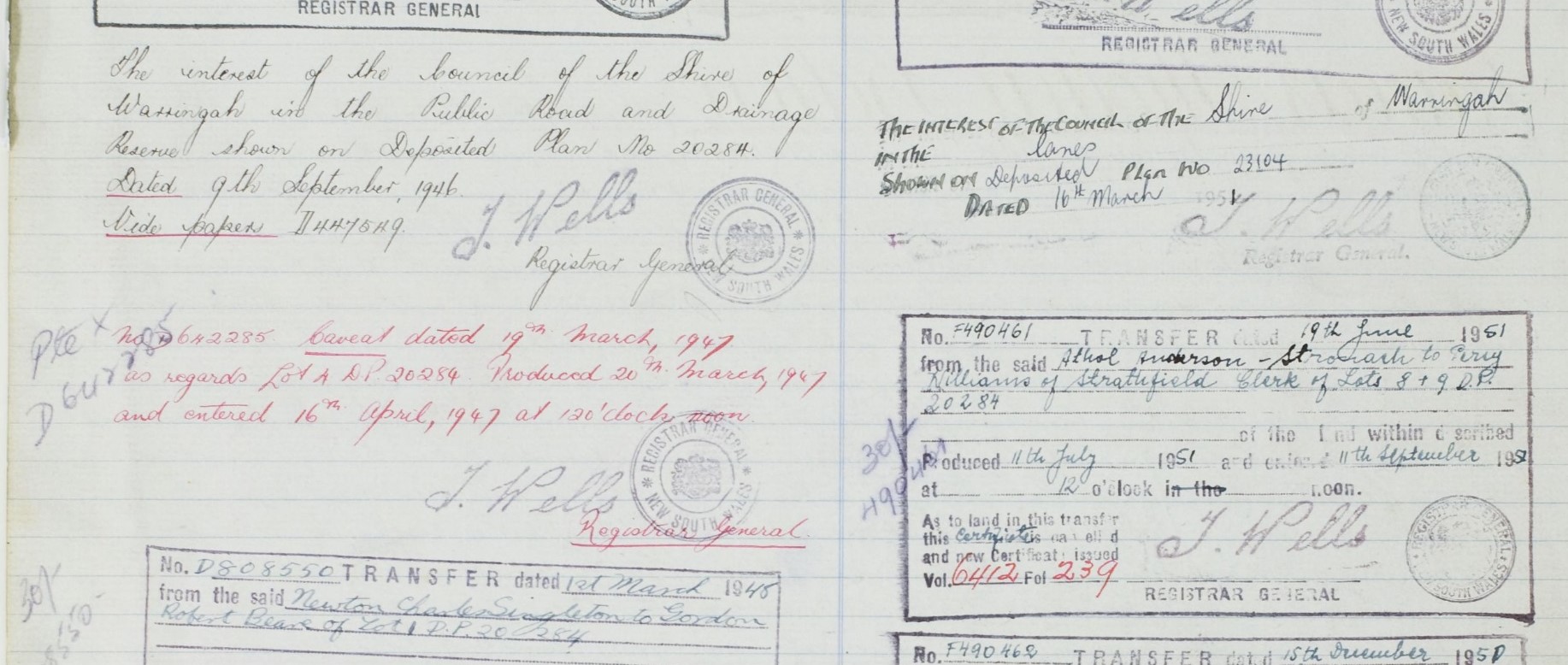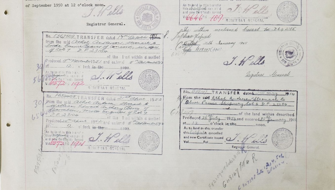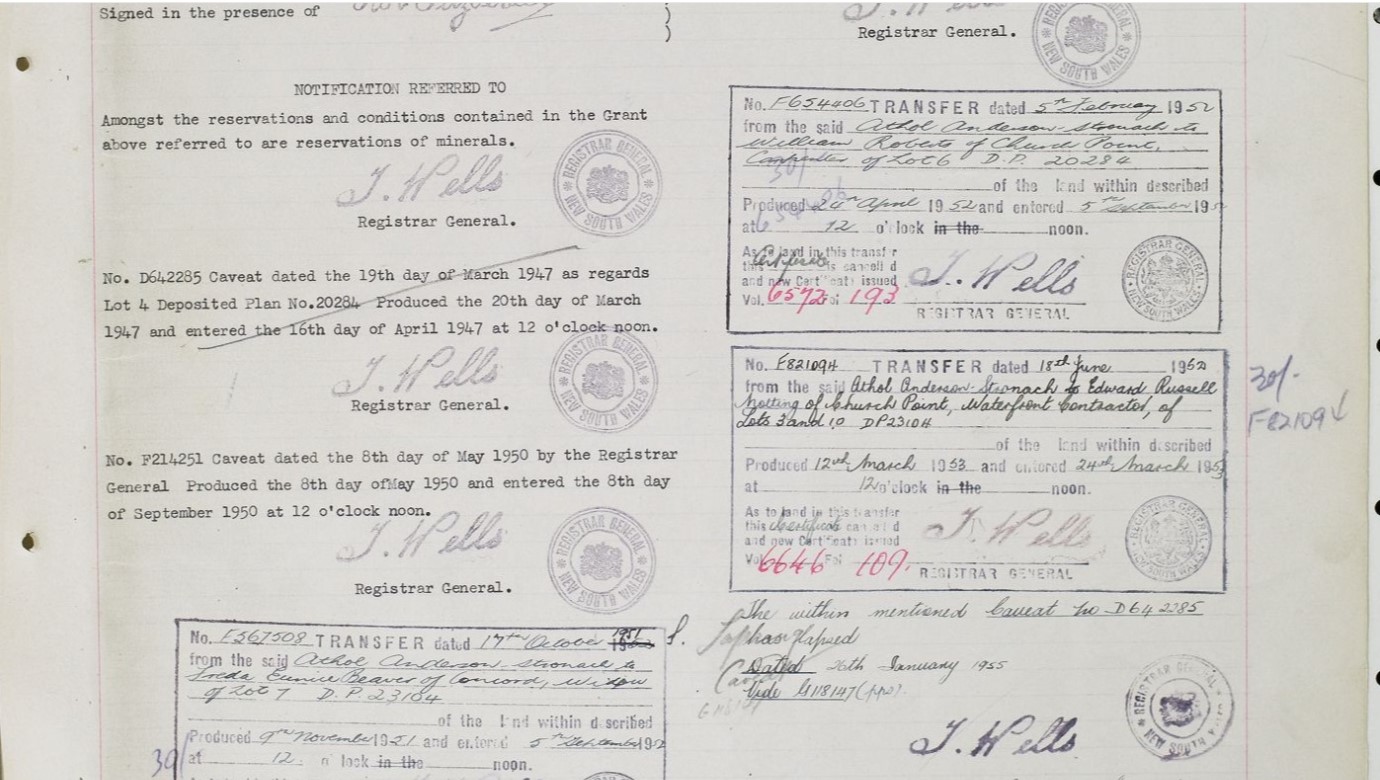 Mr. Stronarch has 10 acres of Portion 17 resumed by the County of Cumberland Planning Scheme on February 24th 1955 (Vol-Fol: 7079-45 Lots 1, 2, 4, 5, 6 – lot 3 already sold – Cert. of title registered Feb. 13 1956) and more on March 4 1960 and more on April 26 1963 (Vol-Fol 9421-39) He passed away February 12th 1985.