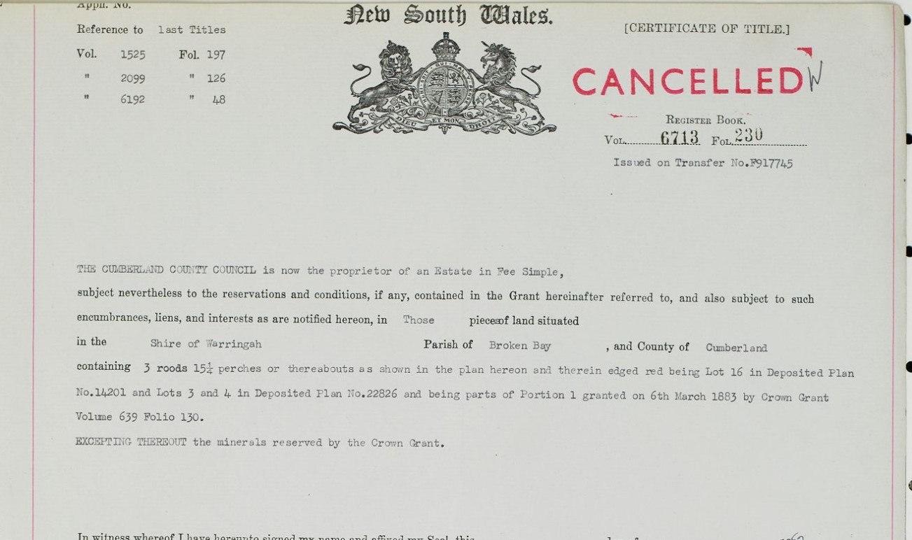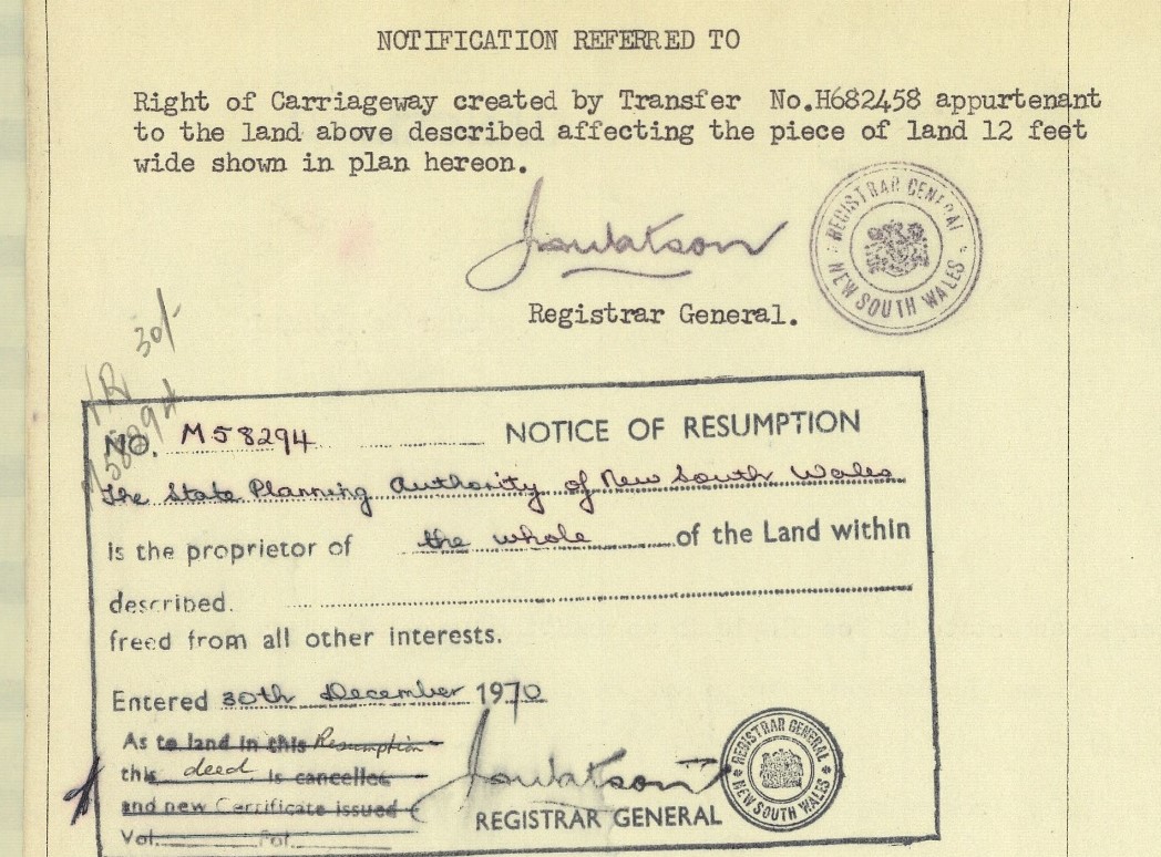 Some of the council's access problems for all residents were solved by simply having the Cumberland County Council resume Lots of lands, at Woody Point adjacent to Hall's wharf, for instance - some of which was subsequently moved into the National Park or reallocated as Crown Land. Others were written into the Permissive Occupancy Special Leases being granted.