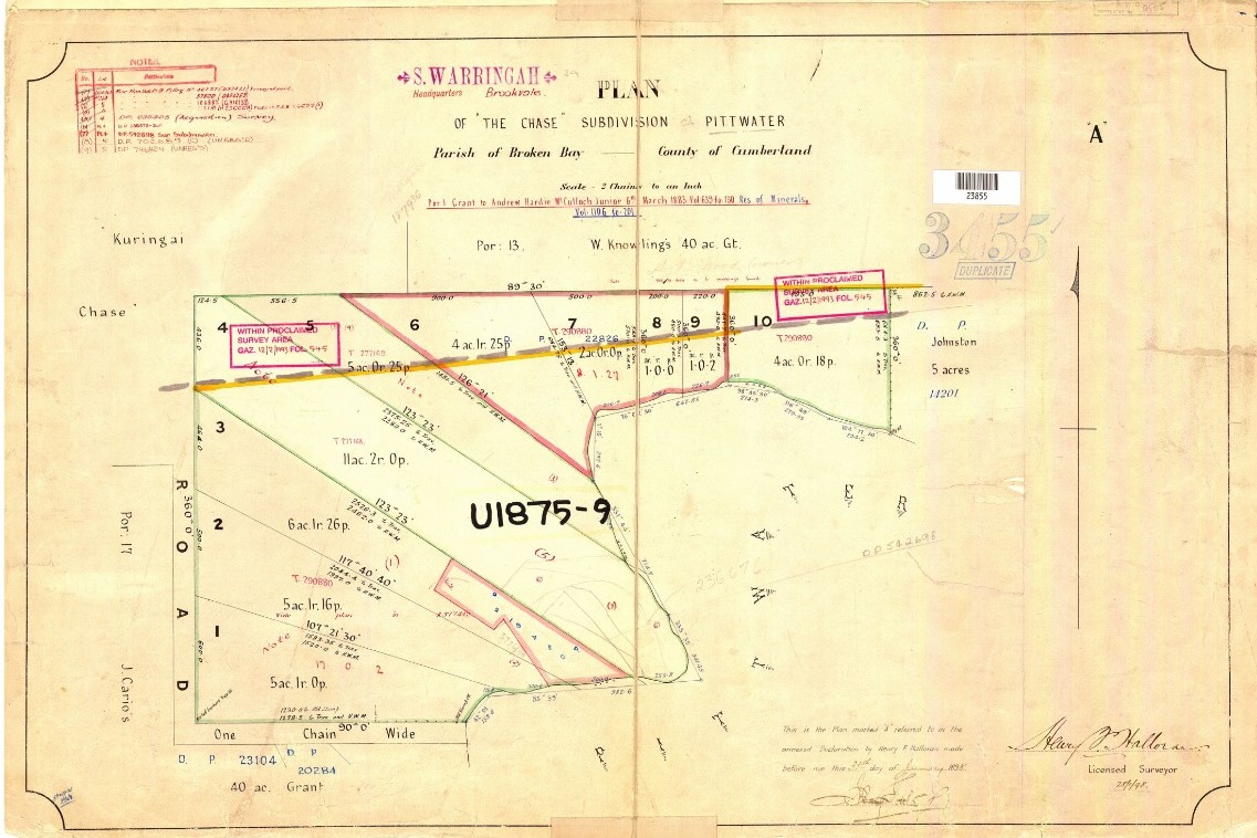 T. F. FURBER, Metropolitan District Surveyor. Applicant : Wm. Henry Speechley. Locality : Co. Cumberland, Ph. Broken Bay, Rocky Point, Pittwater. Area : 8½p. For boathouse, jetty, and bathing-place. Advertising (1907, March 20). The Daily Telegraph (Sydney, NSW : 1883 - 1930), p. 3. Retrieved from http://nla.gov.au/nla.news-article238025608