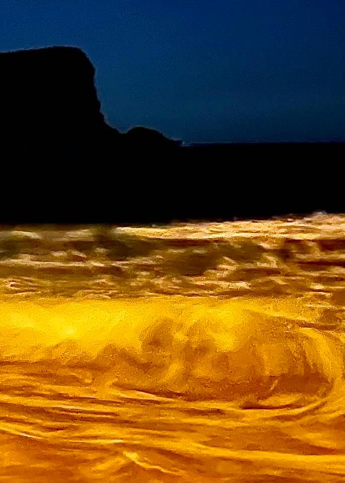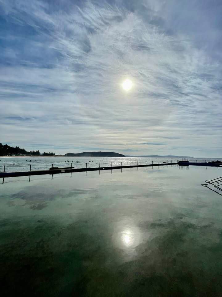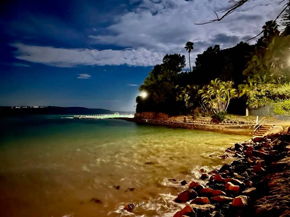 Pool lights lit Avalon Beach, July 2021 - photo by Adriaan van der Wallen