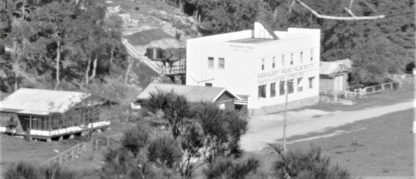 Enlarged section from EB Studios (Sydney, N.S.W.). (1917-1925). Panorama of Palm Beach, New South Wales, 12 Retrieved from http://nla.gov.au/nla.obj-162488494 - with Barranjoey House
