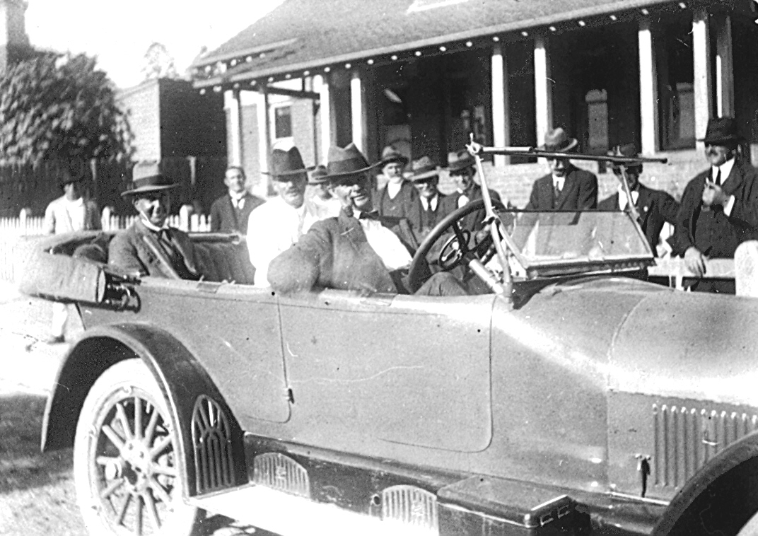 First car to drive to Woy Woy taken outside Erina Shire Council offices Mann Street Gosford March 1923. Photo courtesy Central Coast Library Service - Gostalgia .