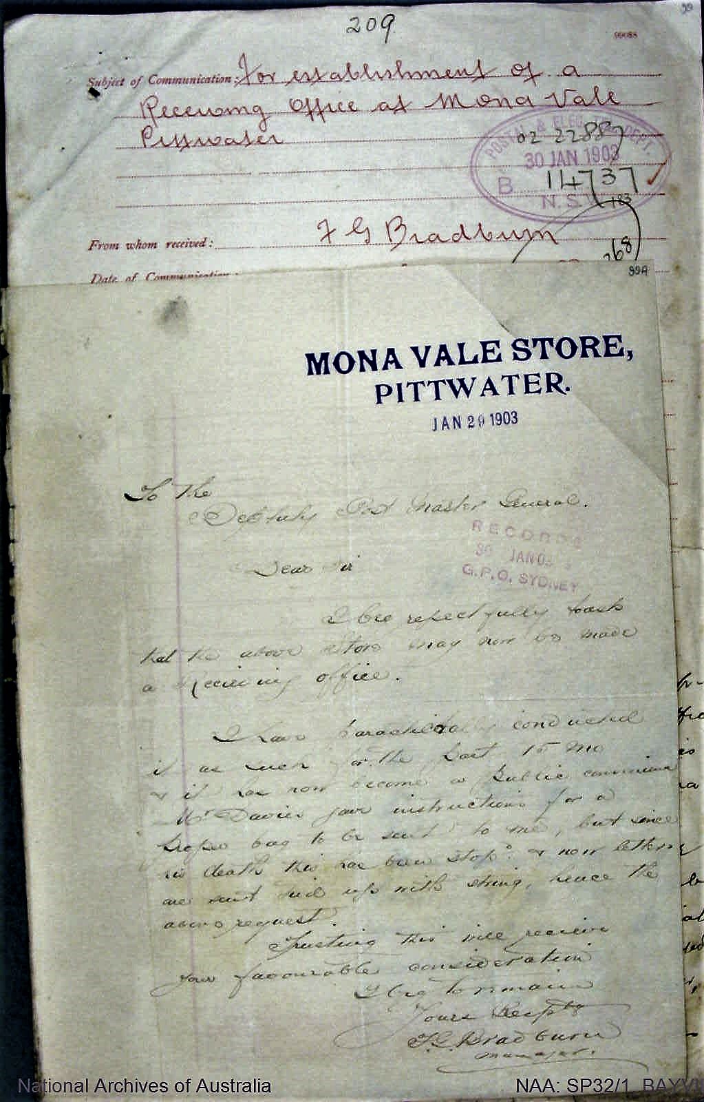 The establishment of a mail service to Pittwater began by the presentation of a petition signed by those who lived here.