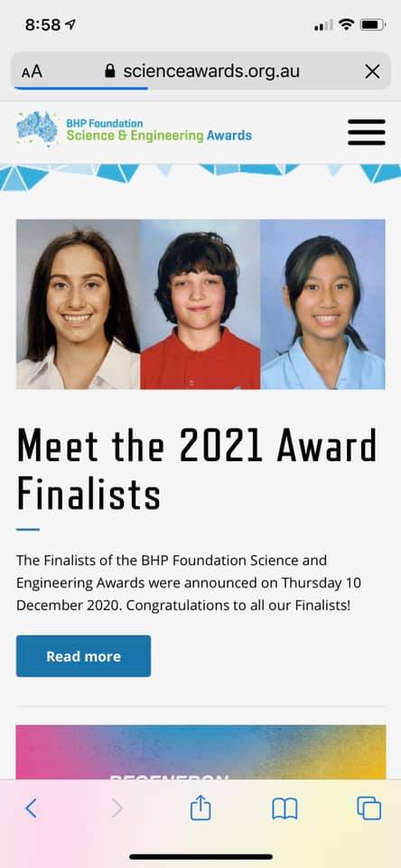 Yes. I’m one of the six Finalists so we all become Delegates of Australia for what’s called the Olympics of Science. We go through this organisation called Regeneron ISEF 2021, which normally means going to America where the event is held each year and they have this amazing series of presentations – it’s one of the best Science Fairs held in the world.