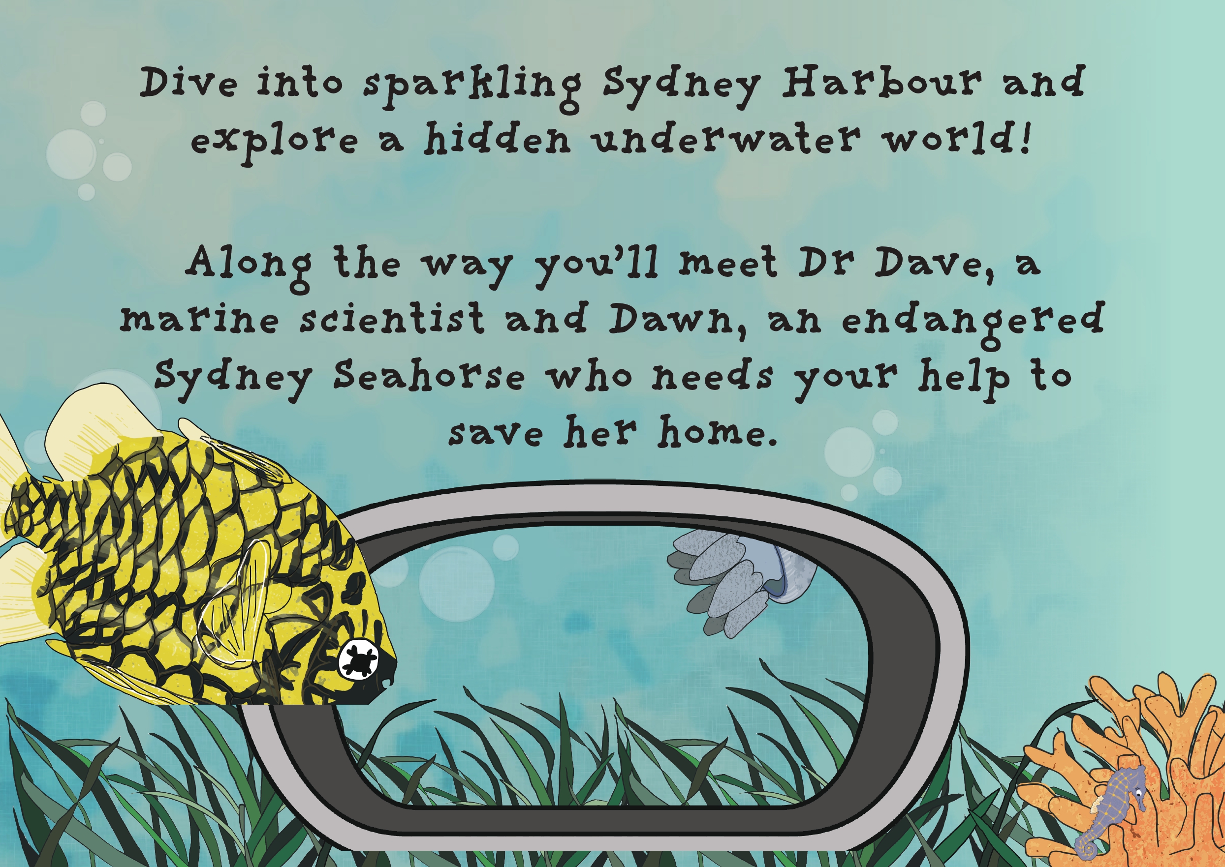 Grab your colouring pencils and dive into sparkling Sydney Harbour to explore a hidden underwater world! Along the way you’ll meet Dr Dave, a marine scientist and Dawn, an endangered Sydney Seahorse who needs your help to save her home.