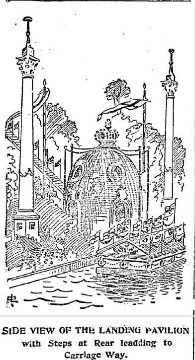 SIDE VIEW OF THE LANDING PAVILION with Steps at Rear leading to Carriage Way.