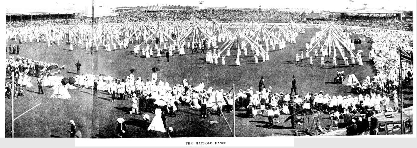 PUBLIC SCHOOLS' DISPLAY, SYDNEY CRICKET GROUND, JANUARY 3, 1901. (1901, January 12). The Sydney Mail and New South Wales Advertiser (NSW : 1871 - 1912), p. 92. Retrieved from http://nla.gov.au/nla.news-article165295937