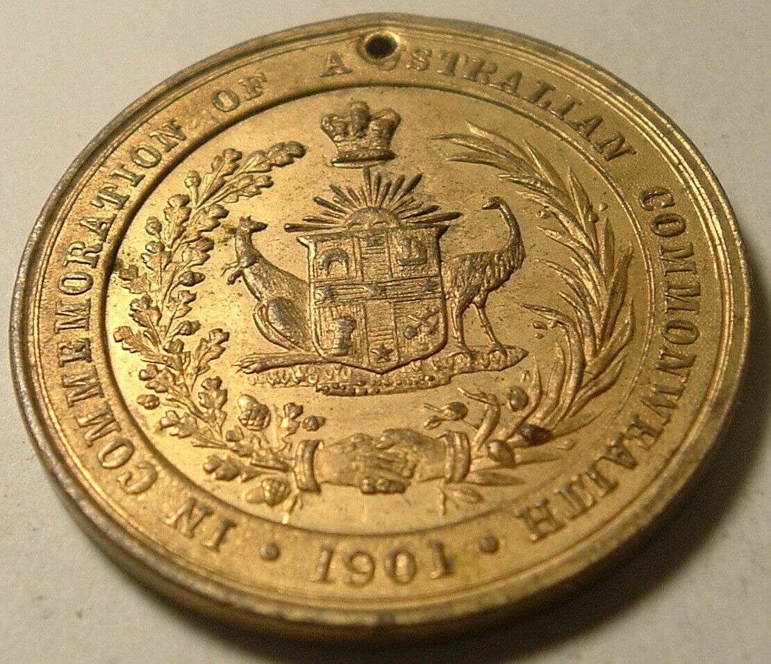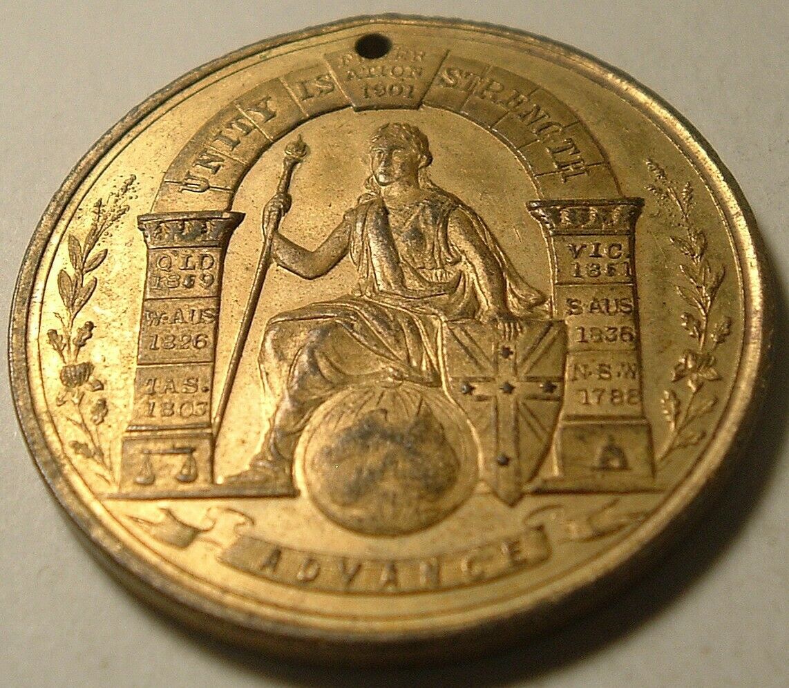 Medallion commemorating the establishment of the Commonwealth of Australia, 1901 and Obverse - currently for sale via E-Bay for 50 US Dollars.
