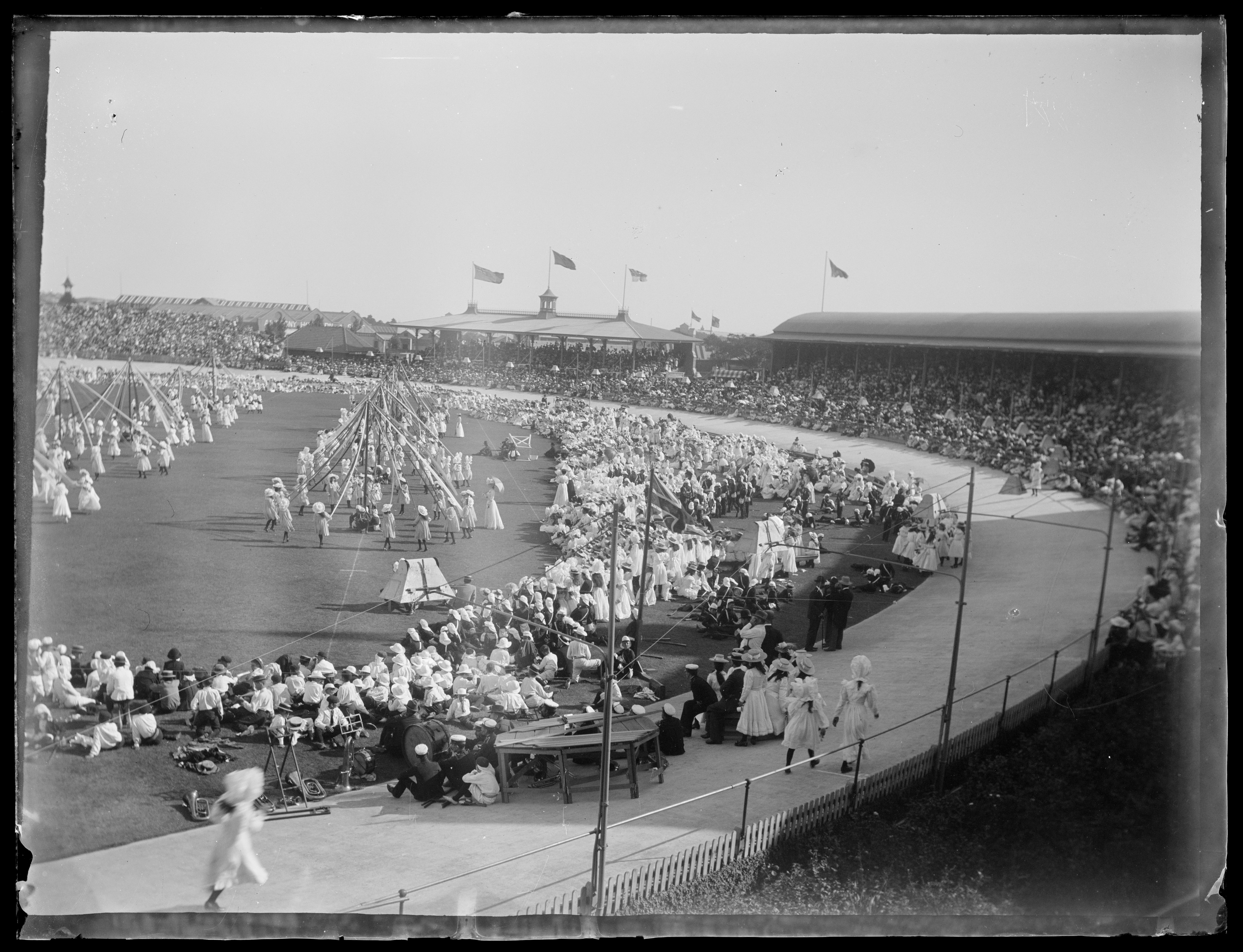 Images No.: c071170014, c071170015 from Box 03, Glass negatives including images of the Sydney and Blue Mountains regions, ca 1890-1910, by William Joseph Macpherson, or his brother, Edward Hume Macpherson, who took a lot of photos for decades which appeared in newspapers and art periodicals, and Images No.: c071860045, c071860048, c071860049, c071860050 and c071860051 from 'Box 21: Glass negatives including views of New Zealand farms, Sydney Harbour, Narrabeen, and maypole dancing at the SCG (children's display 1901), ca. 1890-1910.' Presented by David William Macpherson, 2014, courtesy State Library of NSW.