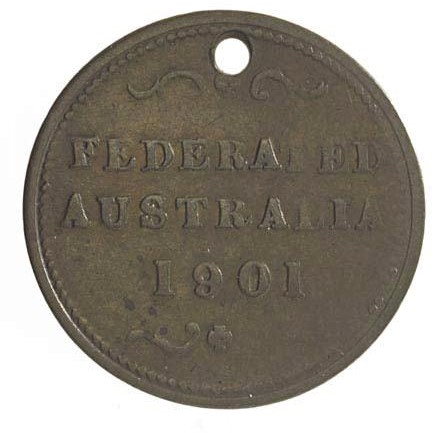 At noon on 1st January, 1901 Lord Hopetoun read the Queen's Proclamation establishing the Commonwealth of Australia, to a vast audience in Centennial Park, Sydney. In succession he was sworn in as Governor-General, and James Barton as Prime Minister, of the new Commonwealth. The old dream of Federation had been achieved, and the former Colonies became States of the new nation. Some of the medals relating to this era are displayed. From Sydney Mint Museum label written by curator, Major HP (Pat) Boland, c1982. Source Credit Line Gift of Australian Museum, 1961 Acquisition Date 27 February 1961