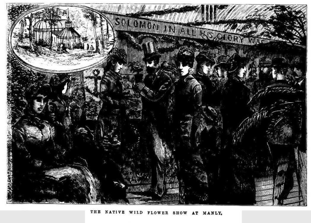 Wild Flower Show at Manly. (1881, October 29). Illustrated Sydney News and New South Wales Agriculturalist and Grazier (NSW : 1872 - 1881), p. 16. Retrieved from http://nla.gov.au/nla.news-article64974679