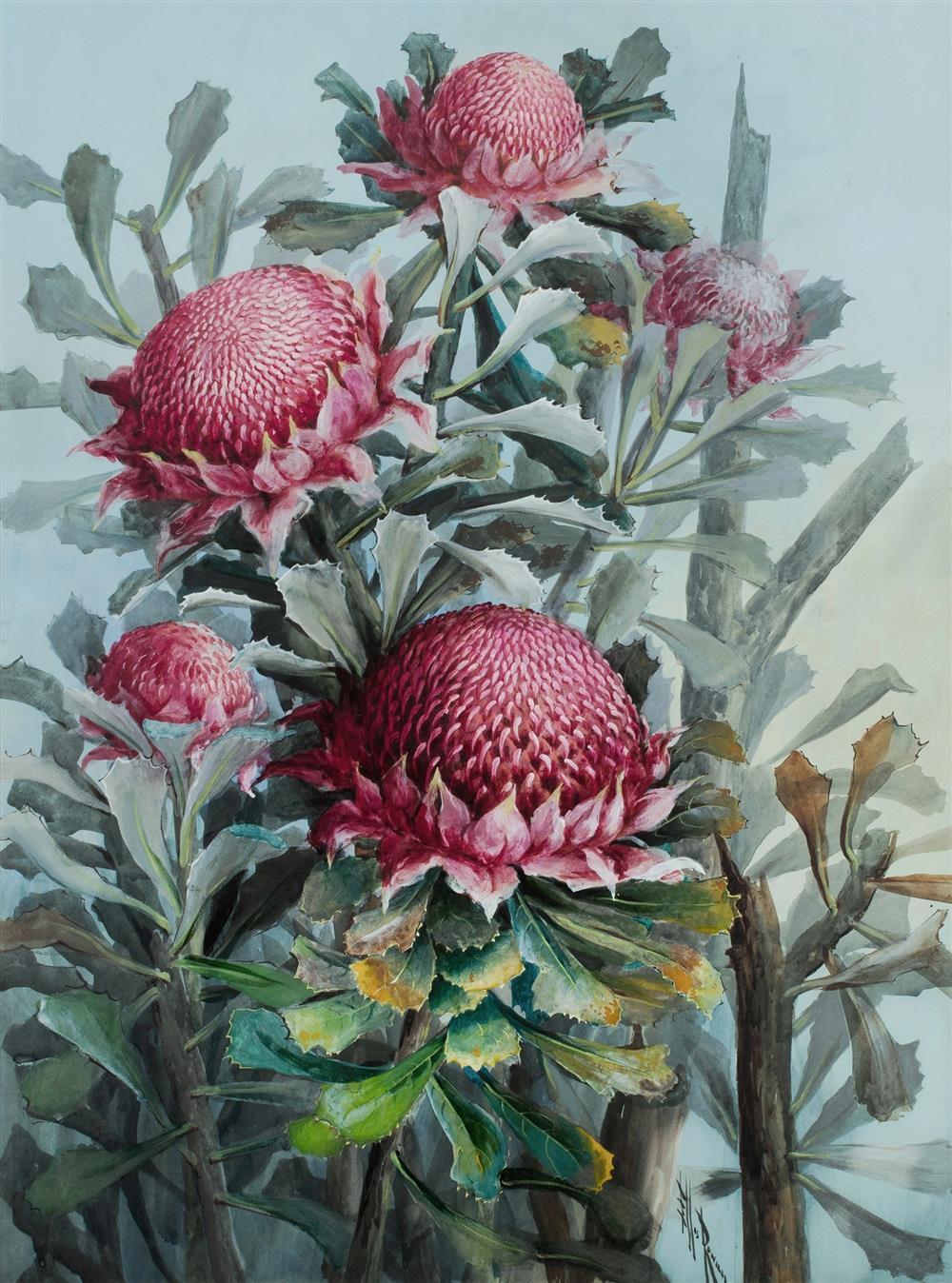 Waratahs, NSW State Floral Emblem., Gouache & W/Clr, by Ellis Rowan