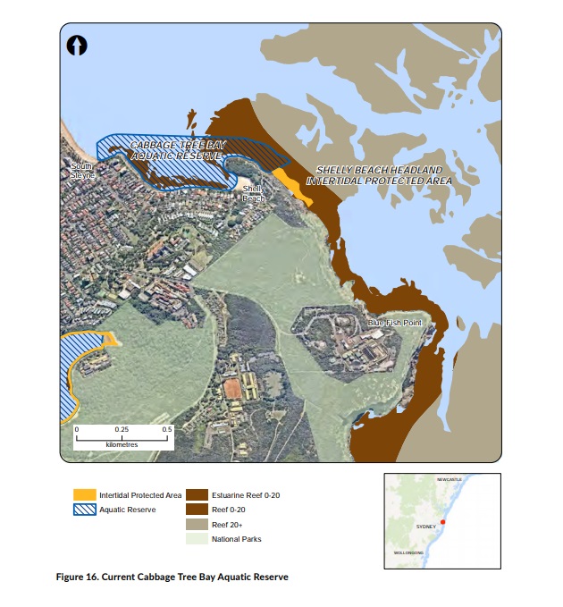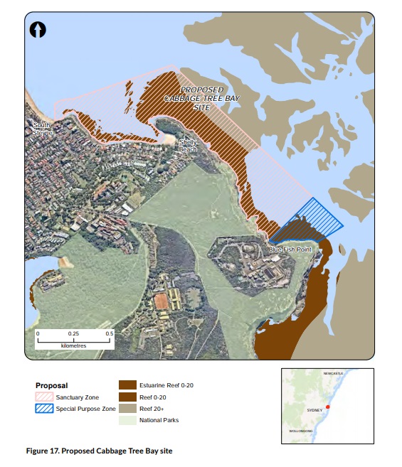 • The proposed site extends the current Cabbage Tree Bay Aquatic Reserve to Blue Fish Point.